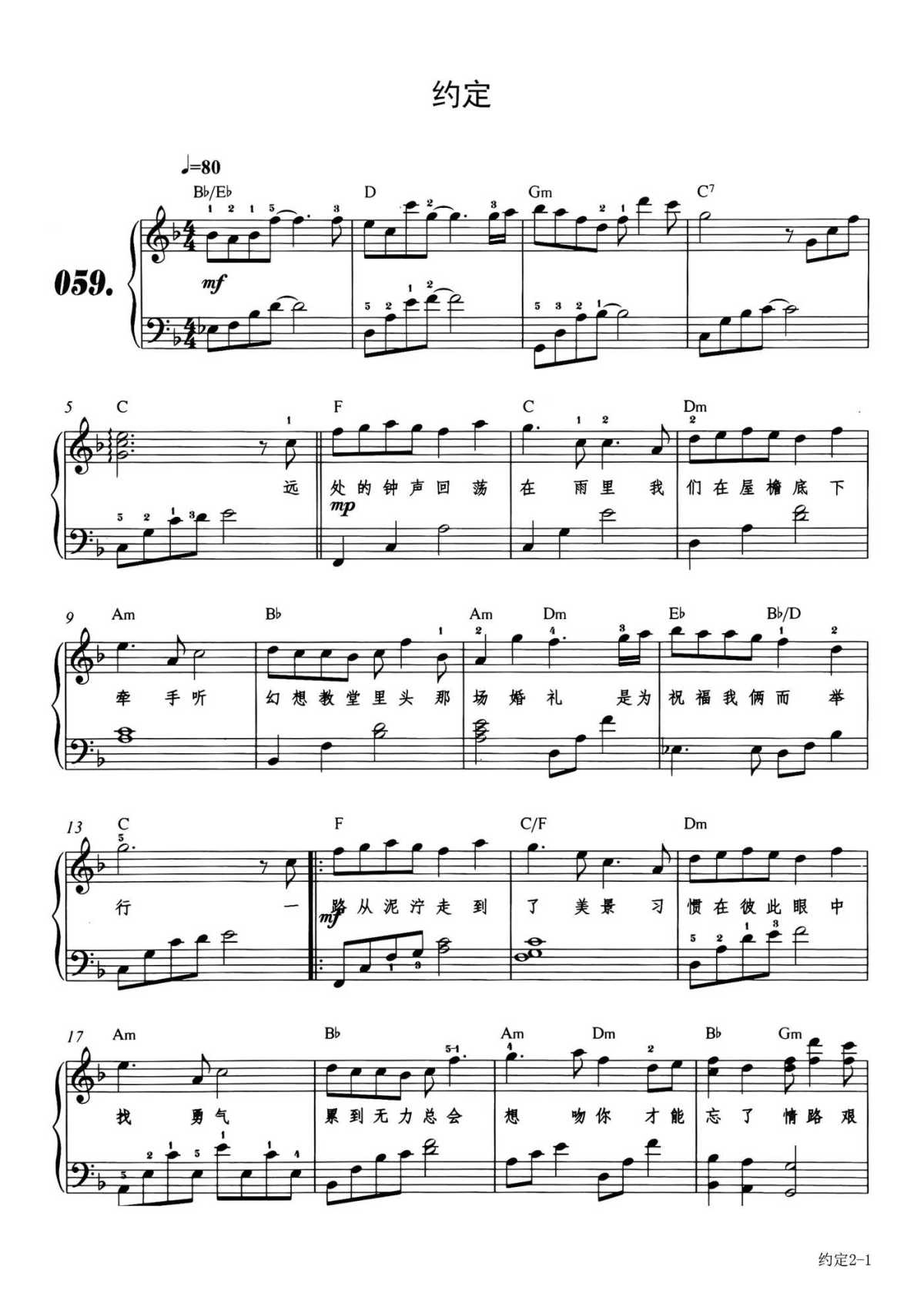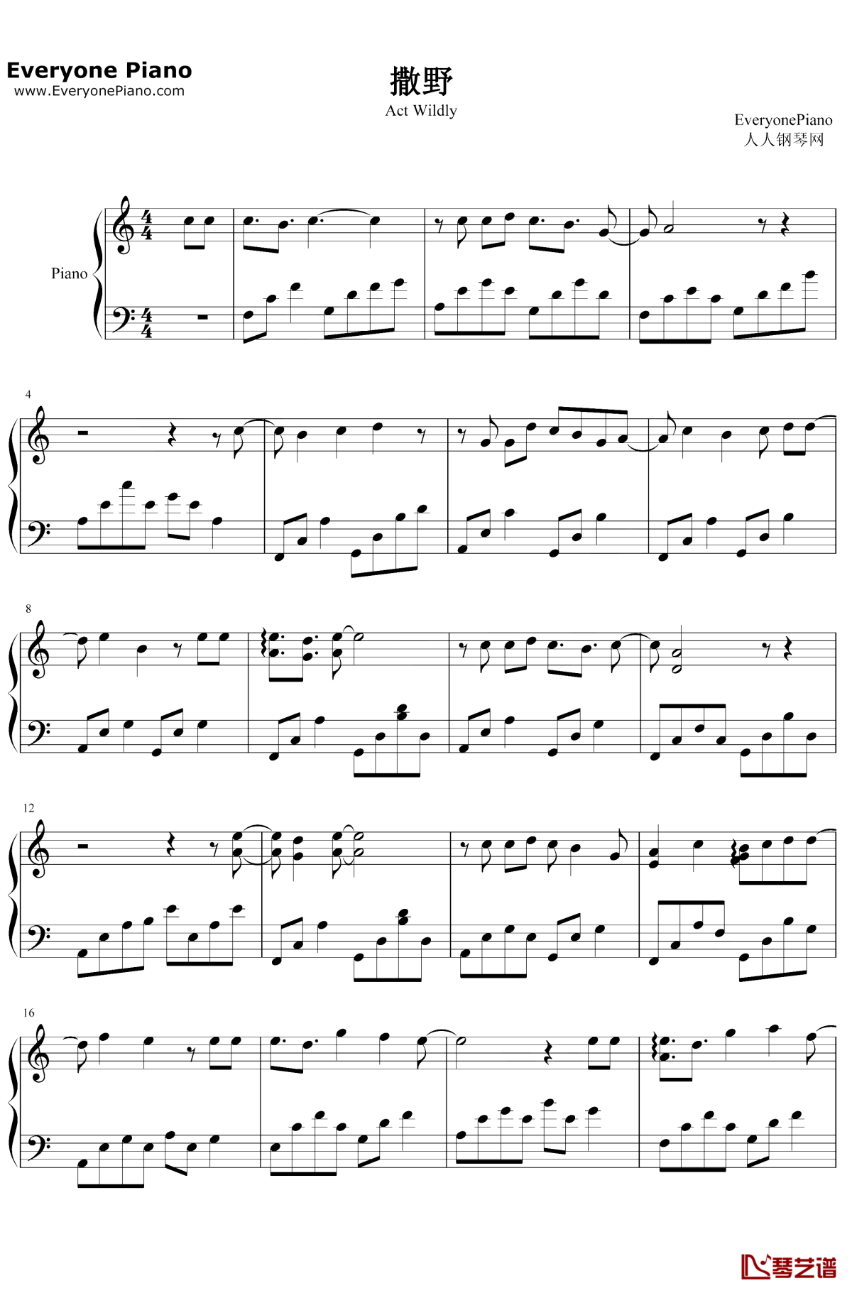逃跑计划《夜空中最亮的星》钢琴谱--C调简单版...