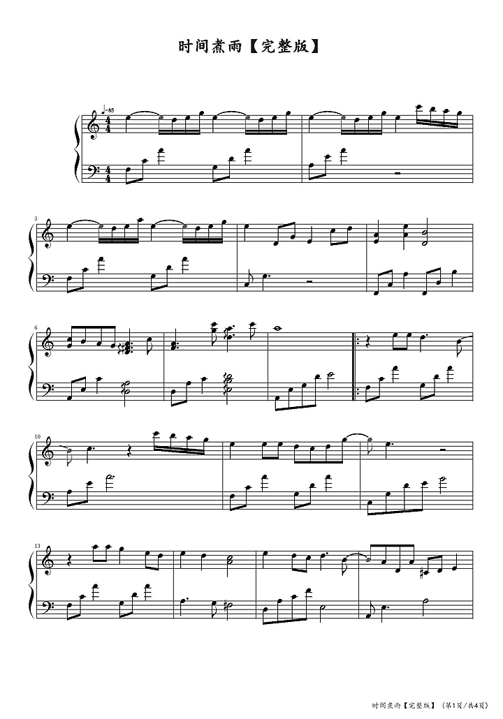 钢琴吴亦凡《时间煮雨》钢琴谱