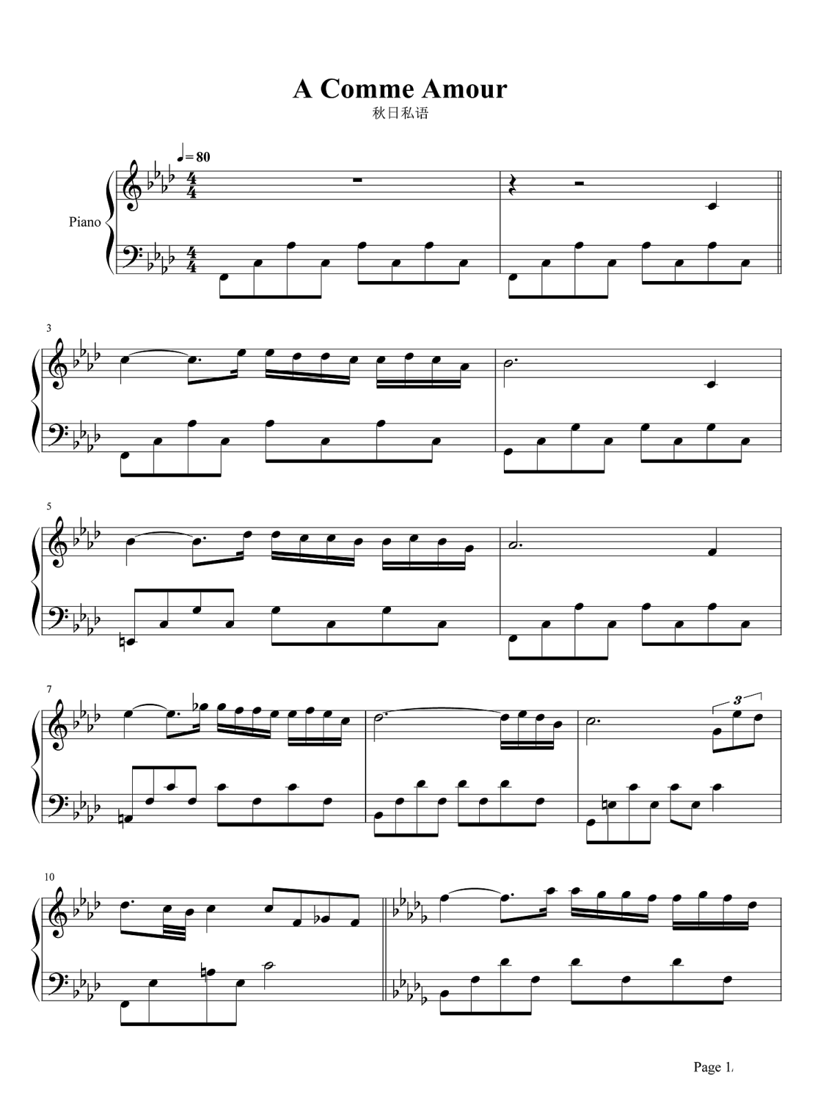 理查德.克莱德曼《秋日私语》钢琴谱...