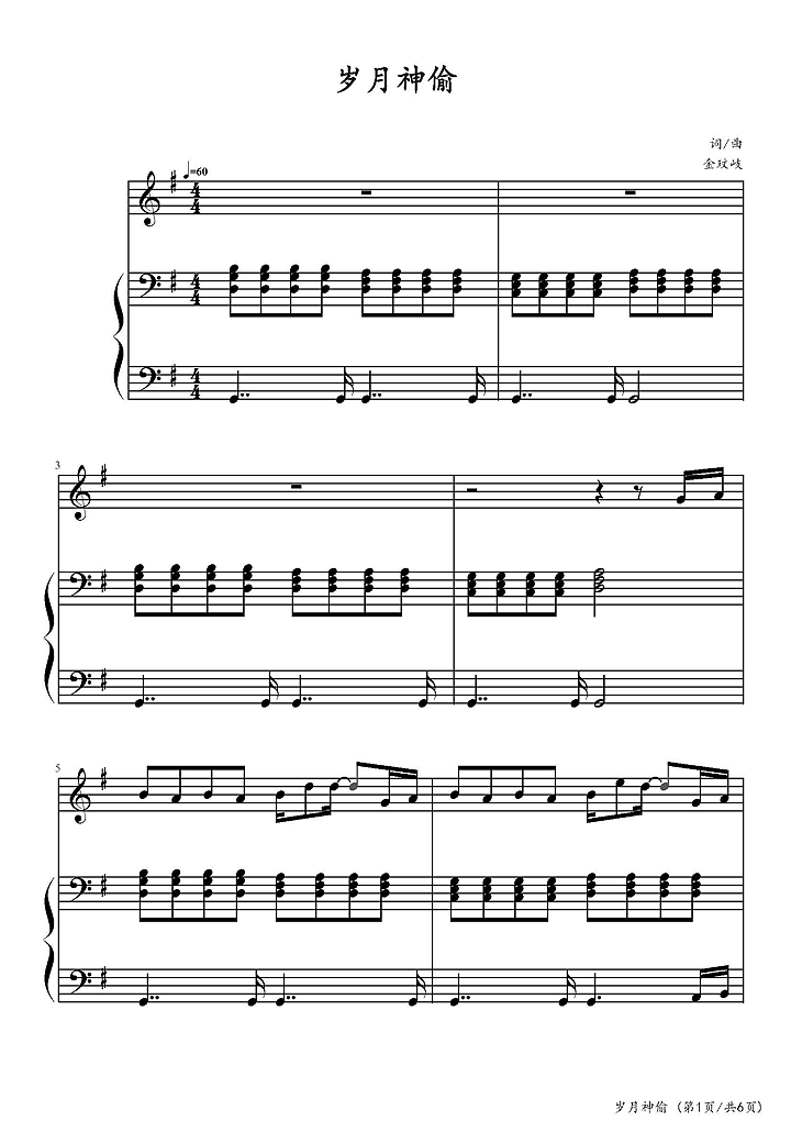 钢琴林俊杰《江南》钢琴谱-C大调版