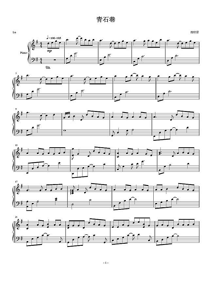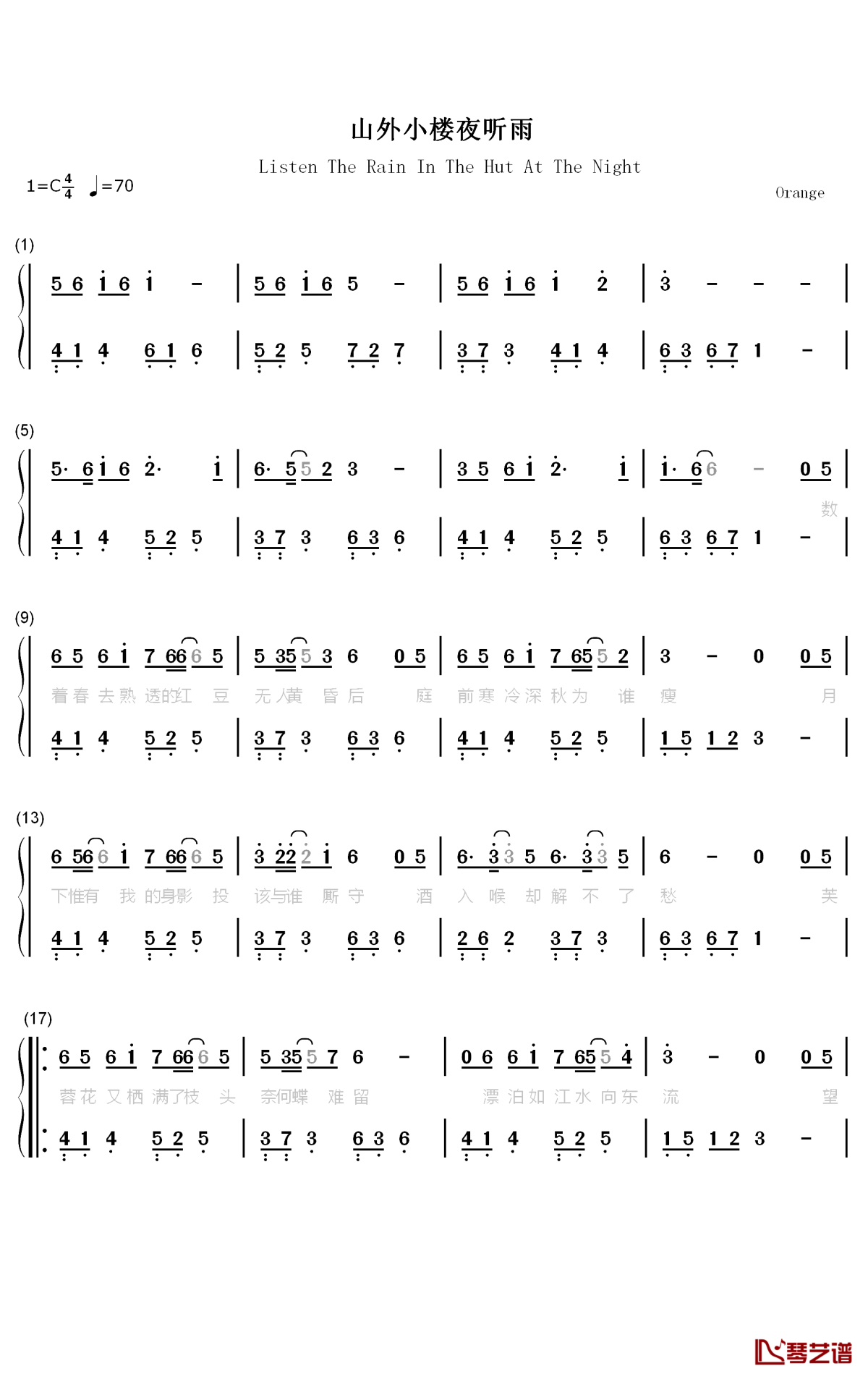 钢琴任然《山外小楼夜听雨》钢琴简谱-数字双手