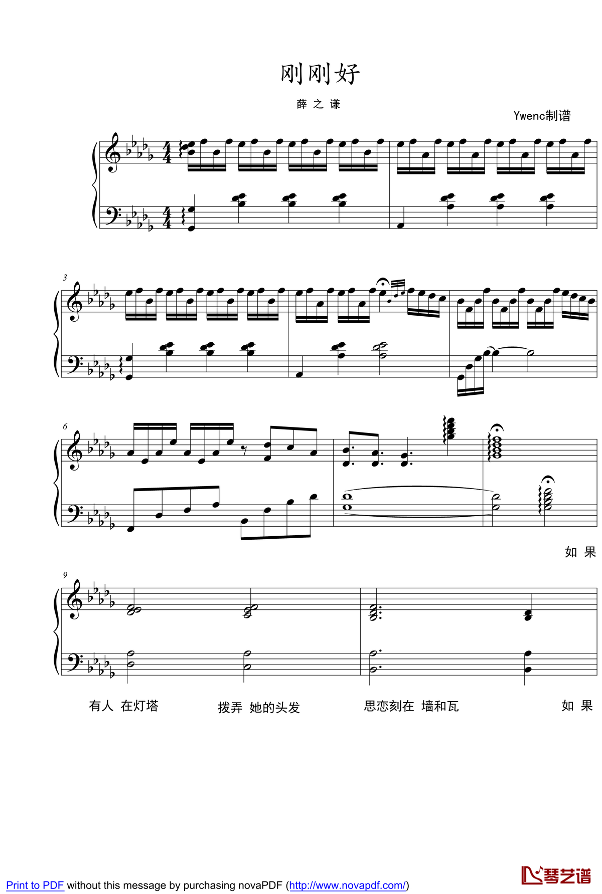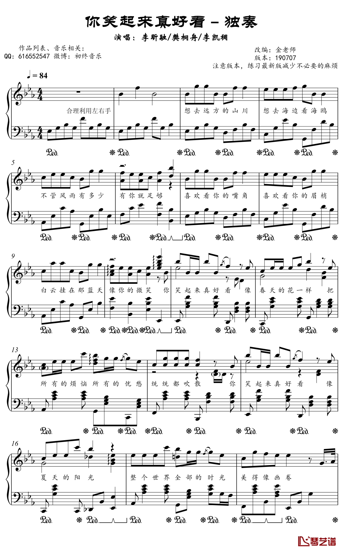 钢琴李昕融《听我说谢谢你》简谱(歌词)