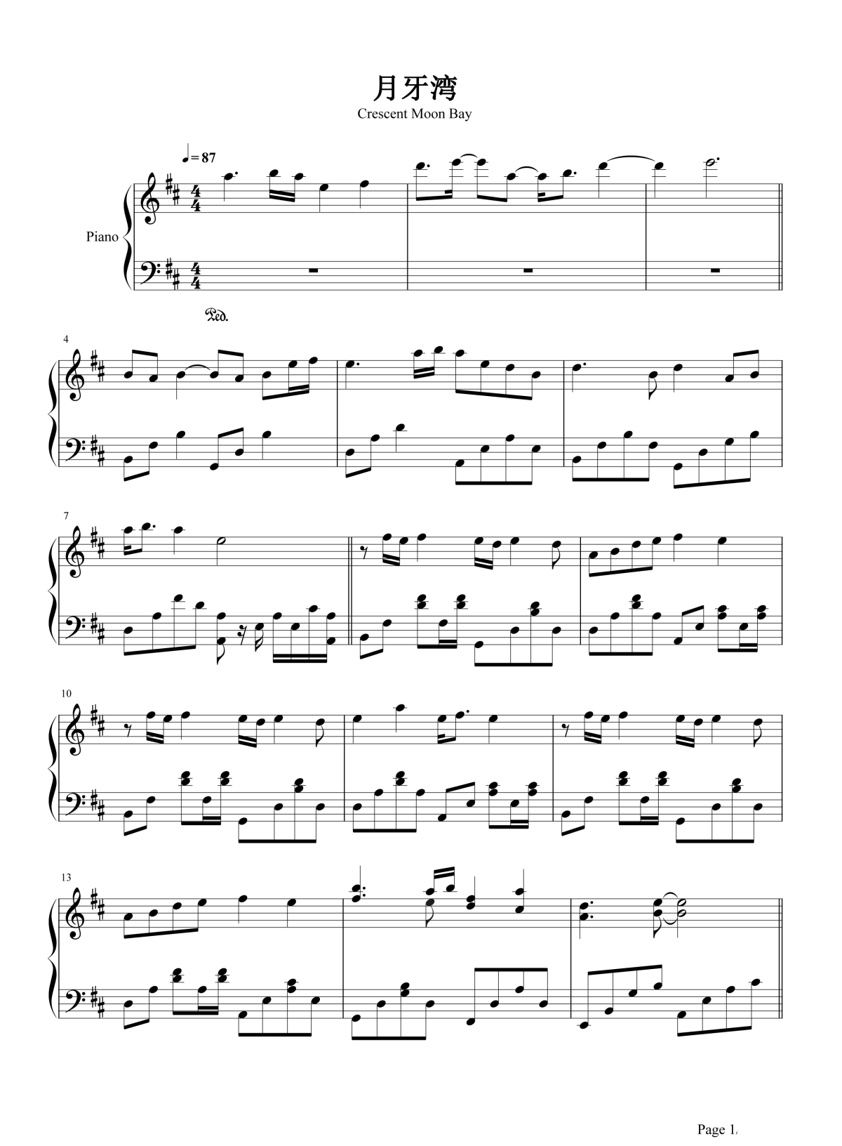 钢琴飞儿乐团《月牙湾》钢琴谱