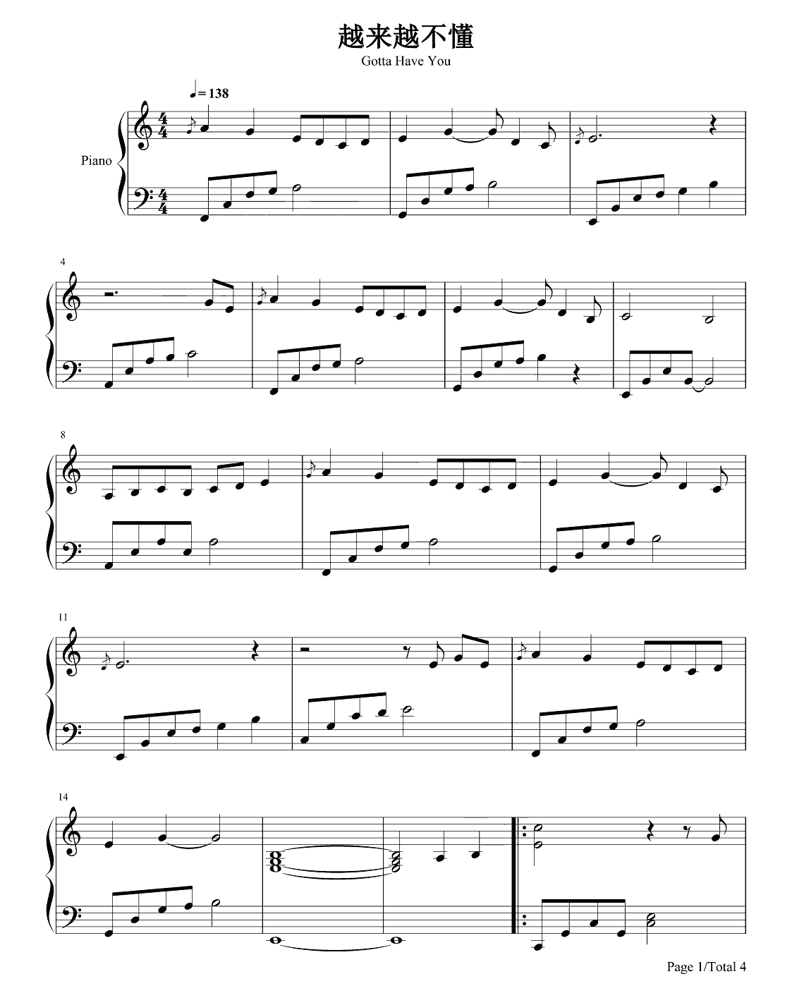 钢琴蔡健雅《越来越不懂》钢琴谱