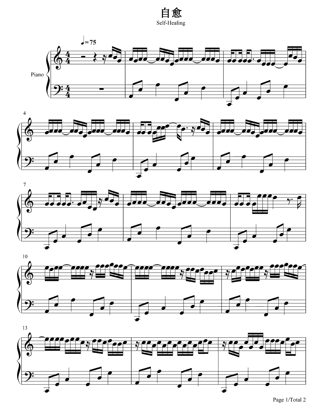 钢琴穆哲熙《自愈》钢琴谱 高清版