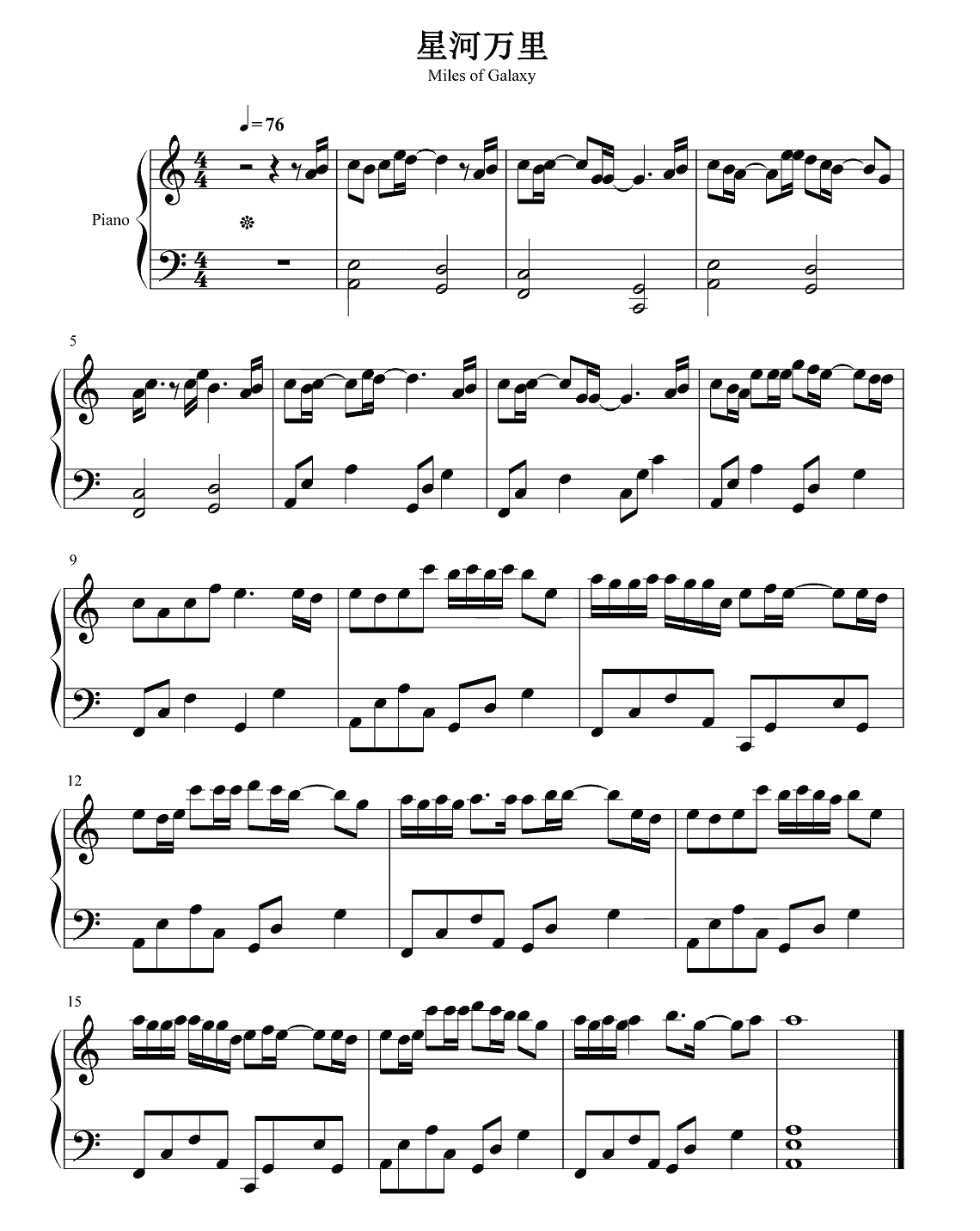 钢琴抖音 ROM邢锐《星河万里》钢琴谱
