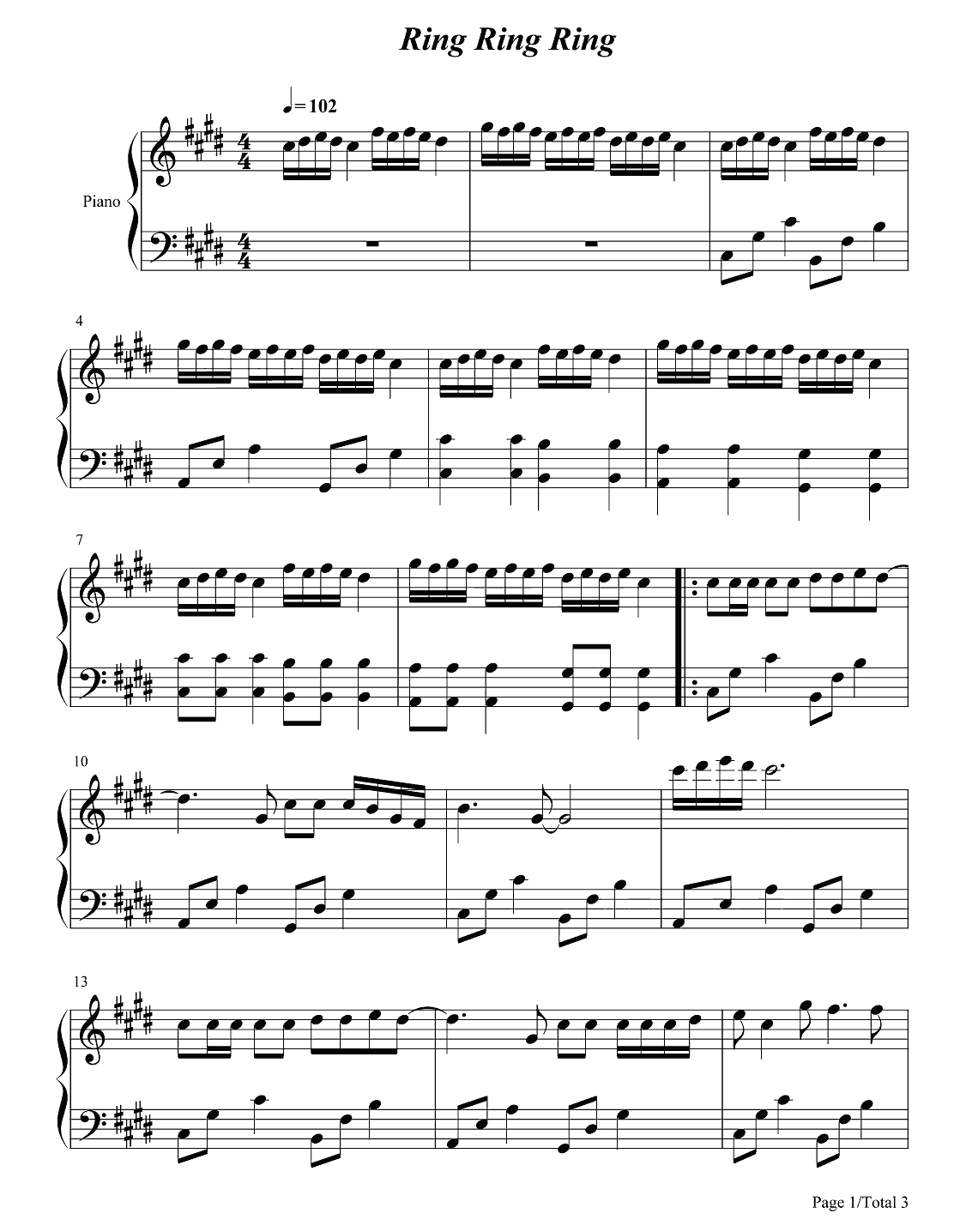 钢琴SHE《Ring Ring Ring》钢琴谱