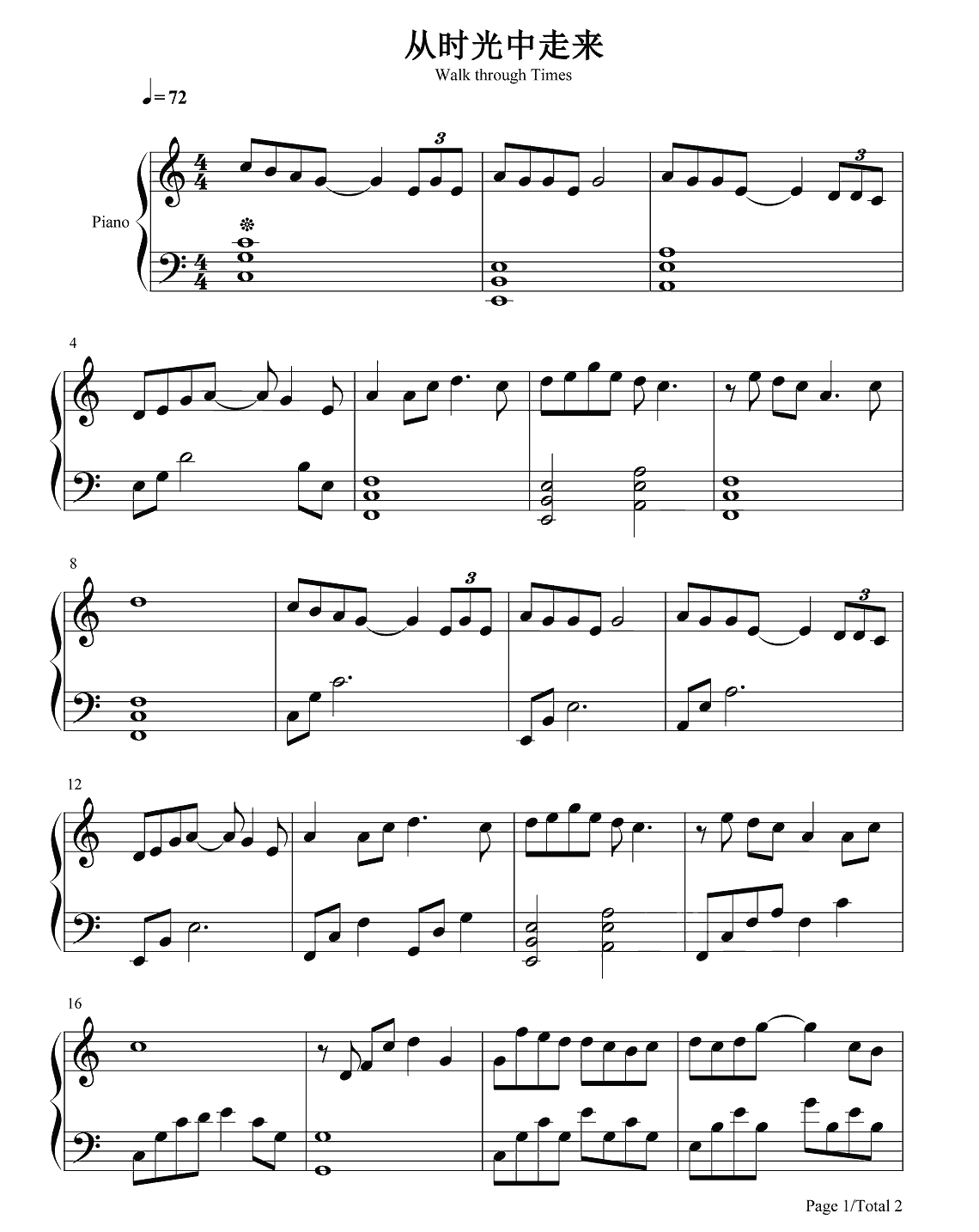钢琴阿云嘎《从时光中走来》钢琴谱