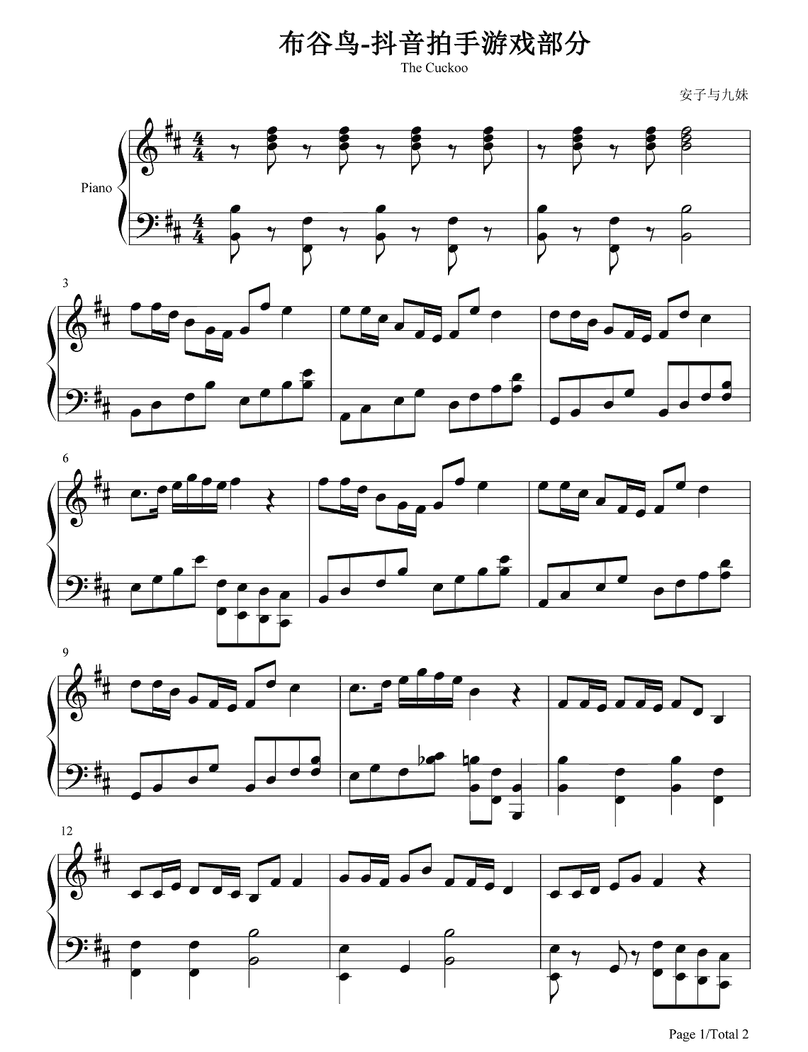 钢琴安子与九妹《布谷鸟》钢琴谱