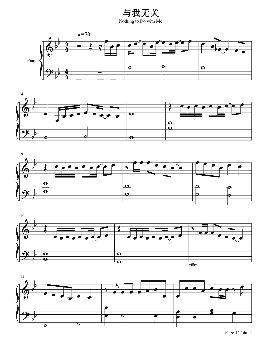 钢琴抖音热歌 阿冗《与我无关》钢琴谱