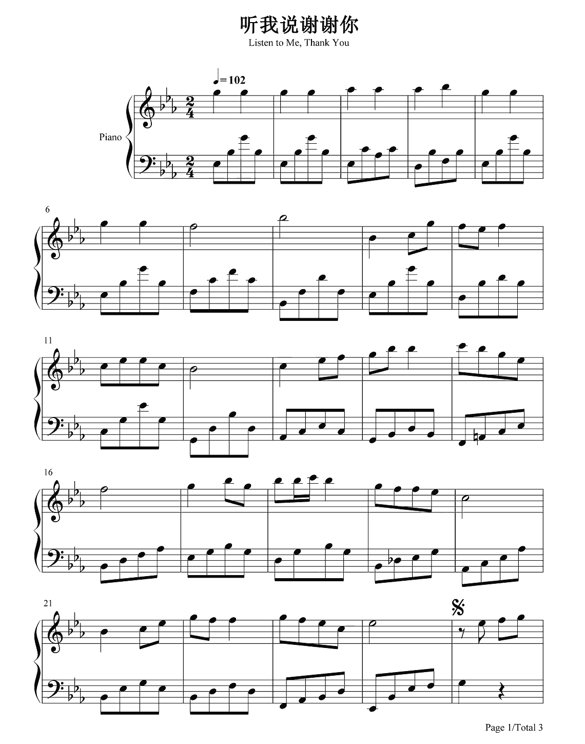钢琴李昕融《听我说谢谢你》钢琴谱