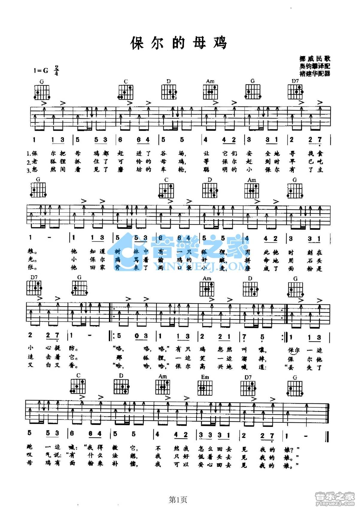 吉他挪威民歌《保尔的母鸡》吉他谱_吉他弹唱谱
