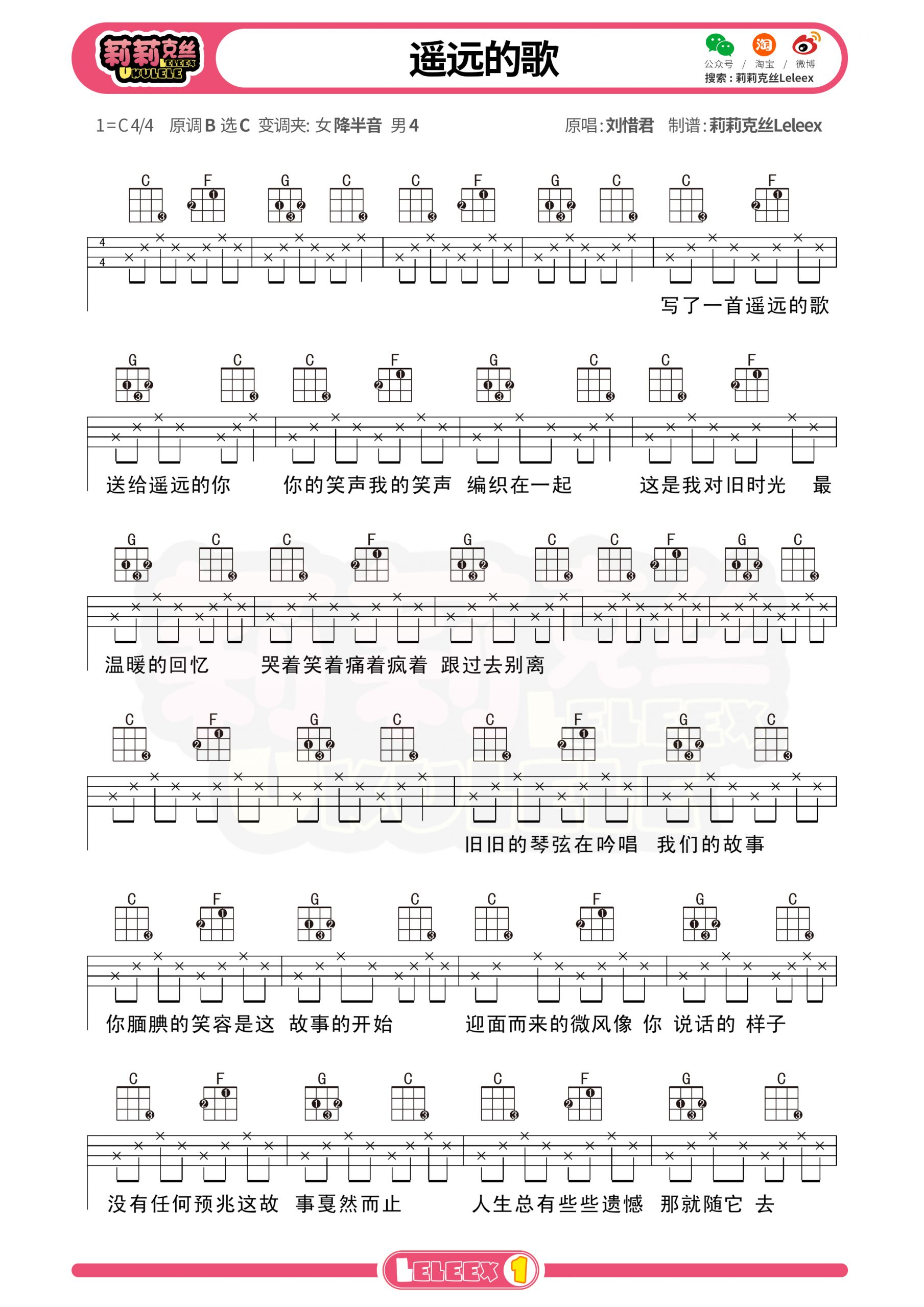 尤克里里刘惜君《遥远的歌》尤克里里曲谱-C调弹唱谱