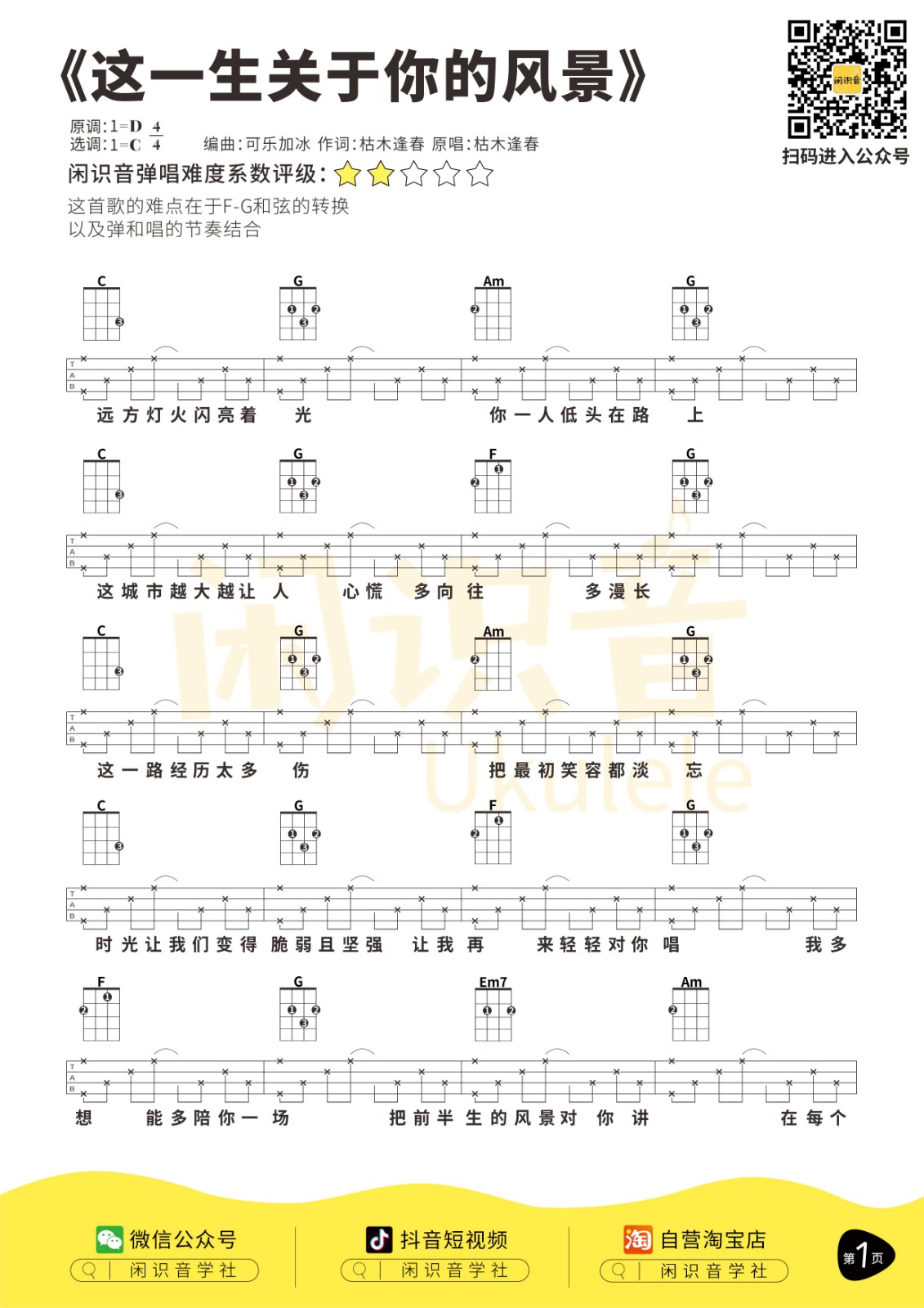 枯木逢春《这一生关于你的风景》尤克里里曲谱-C调弹唱谱...