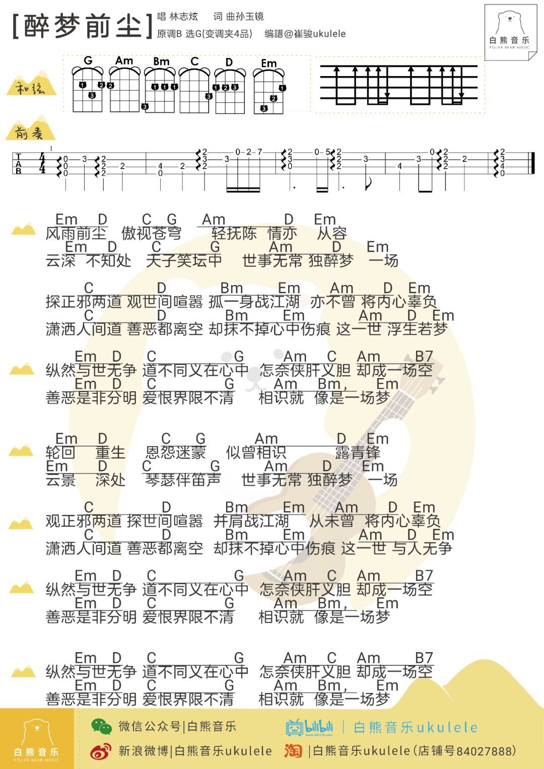 醉梦前尘尤克里里谱动画「魔道祖师」主题曲...