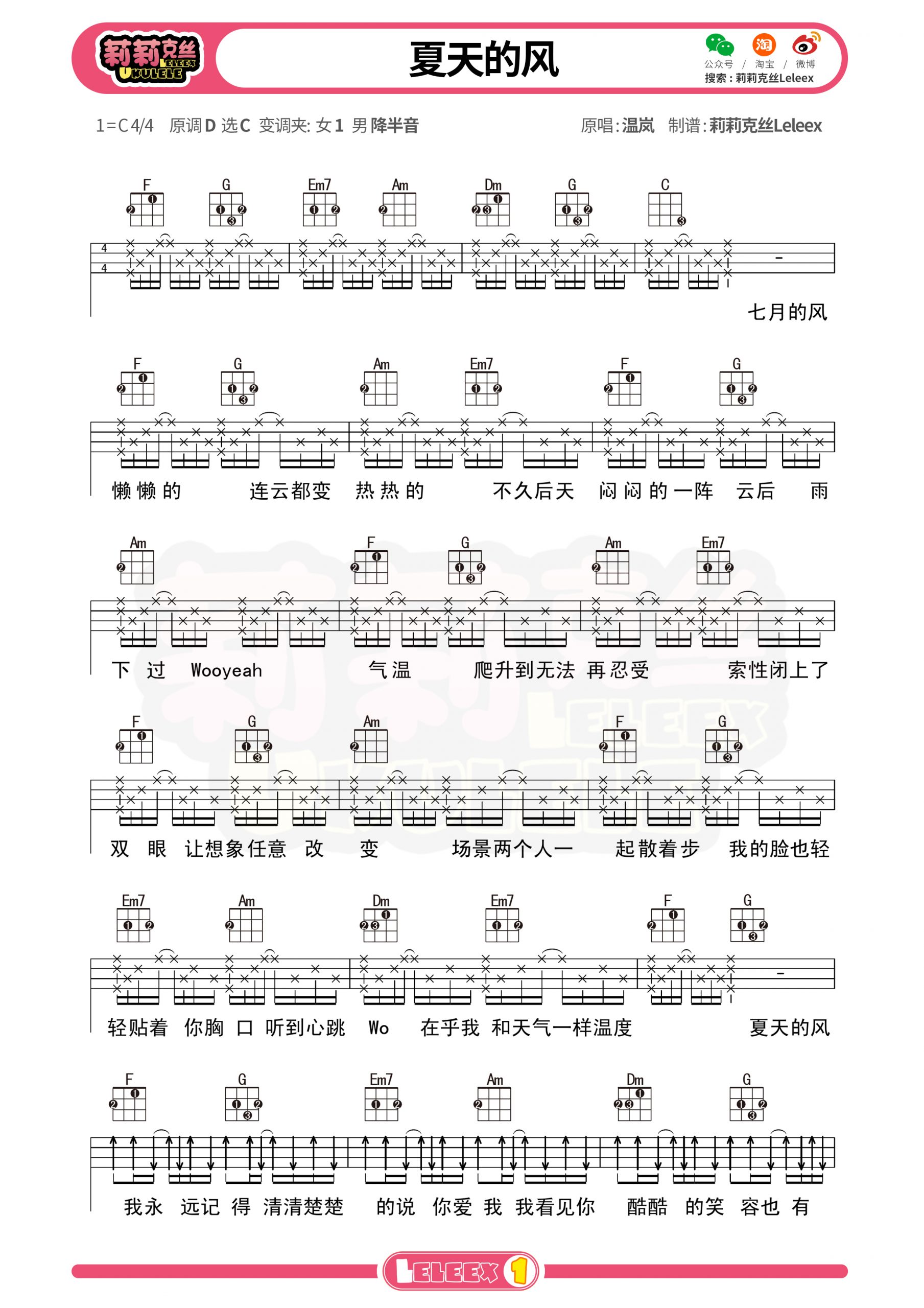 《夏天的风》尤克里里弹唱谱-温岚...