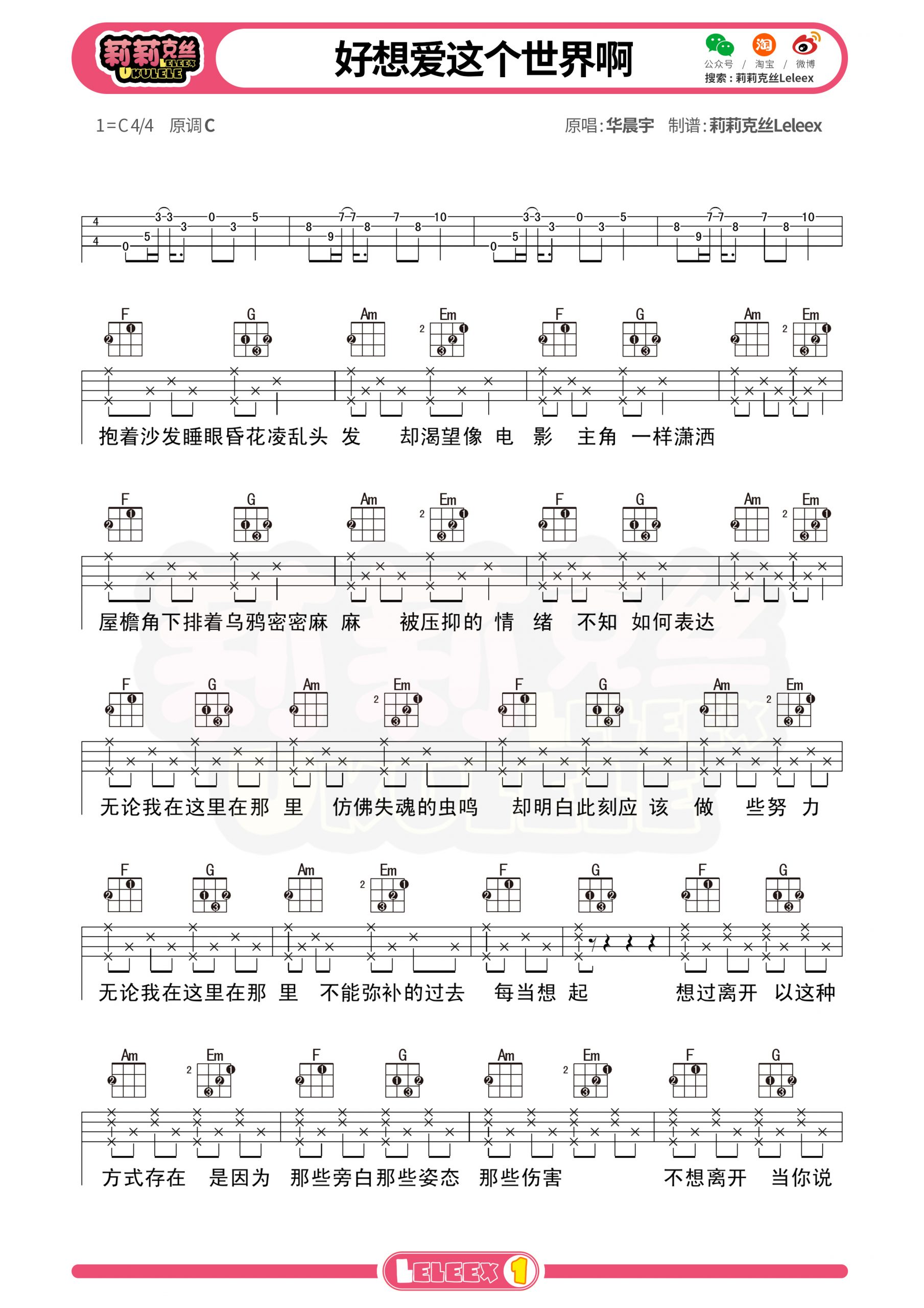 尤克里里华晨宇《好想爱这个世界啊》尤克里里曲谱-C调弹唱谱