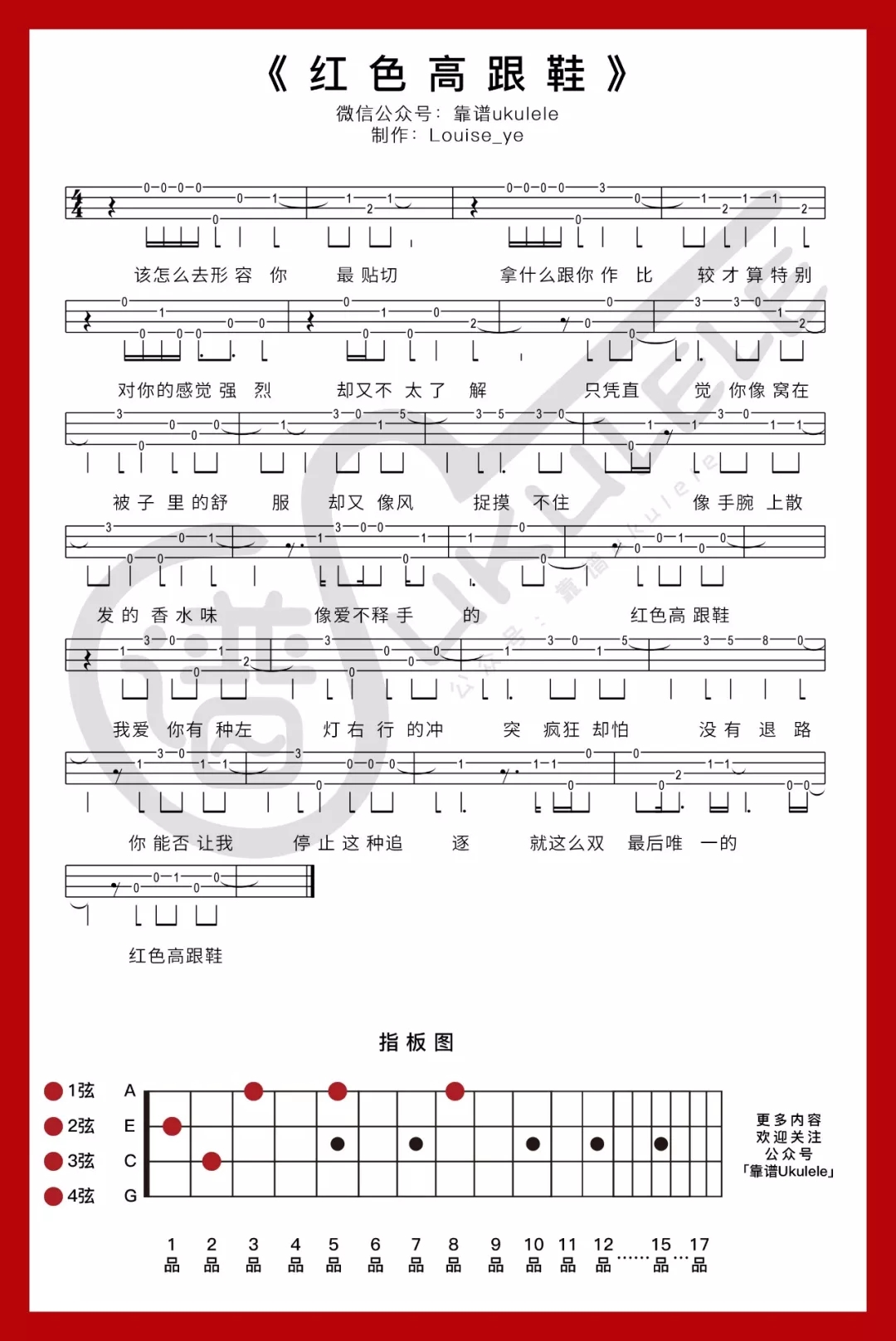 蔡健雅《红色高跟鞋》尤克里里弹唱谱...