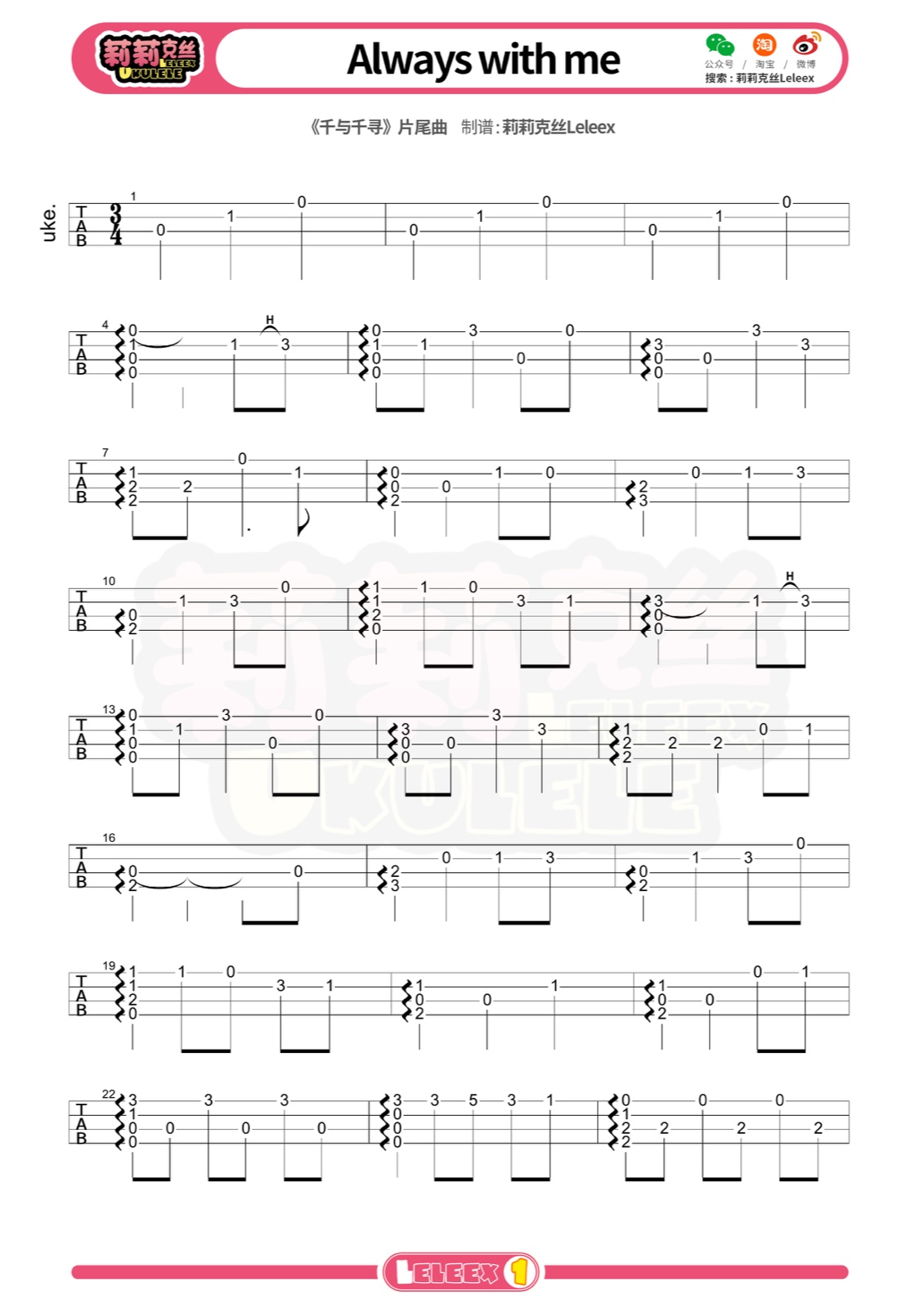 千与千寻《Alwayswithme》尤克里里谱指弹版...