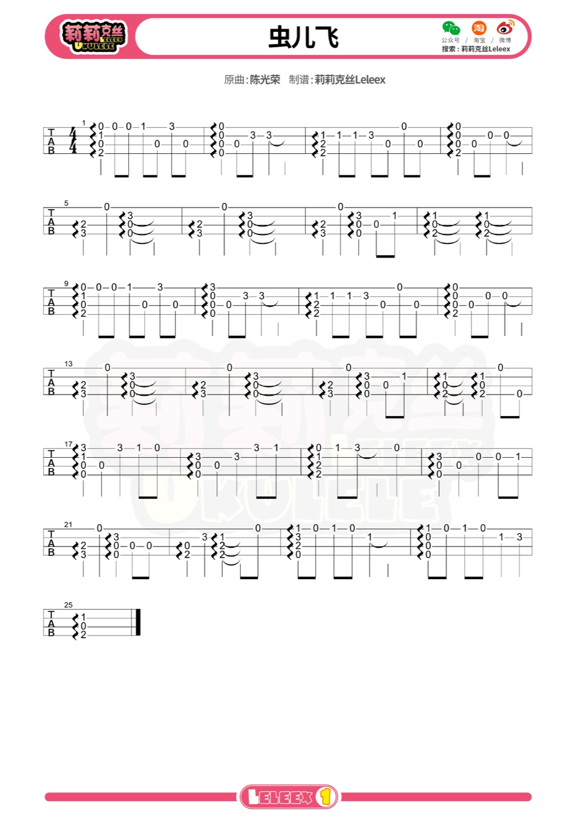 尤克里里陈光荣《虫儿飞》尤克里里指弹版