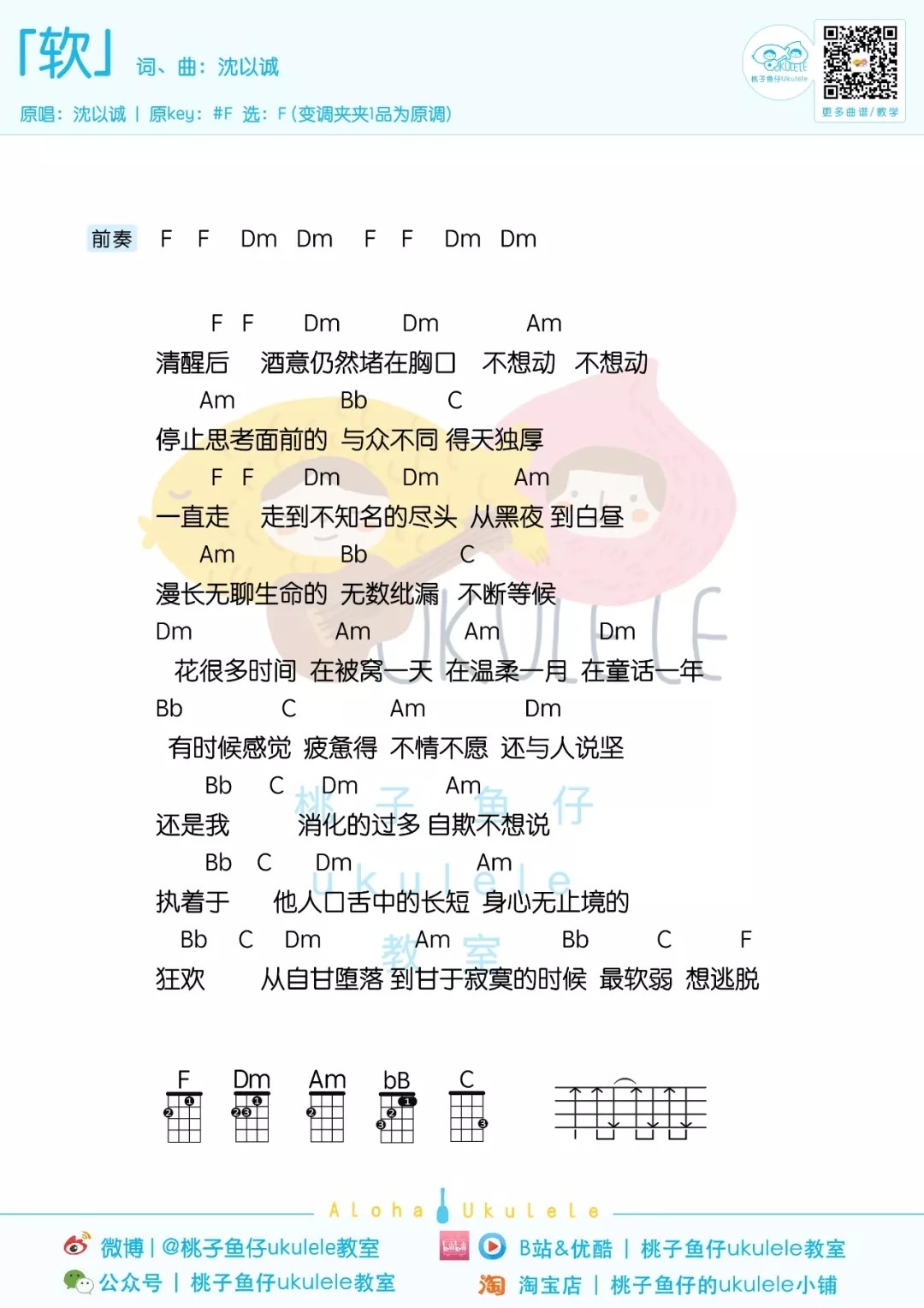 沈以诚《软》尤克里里谱弹唱版F调和弦谱...