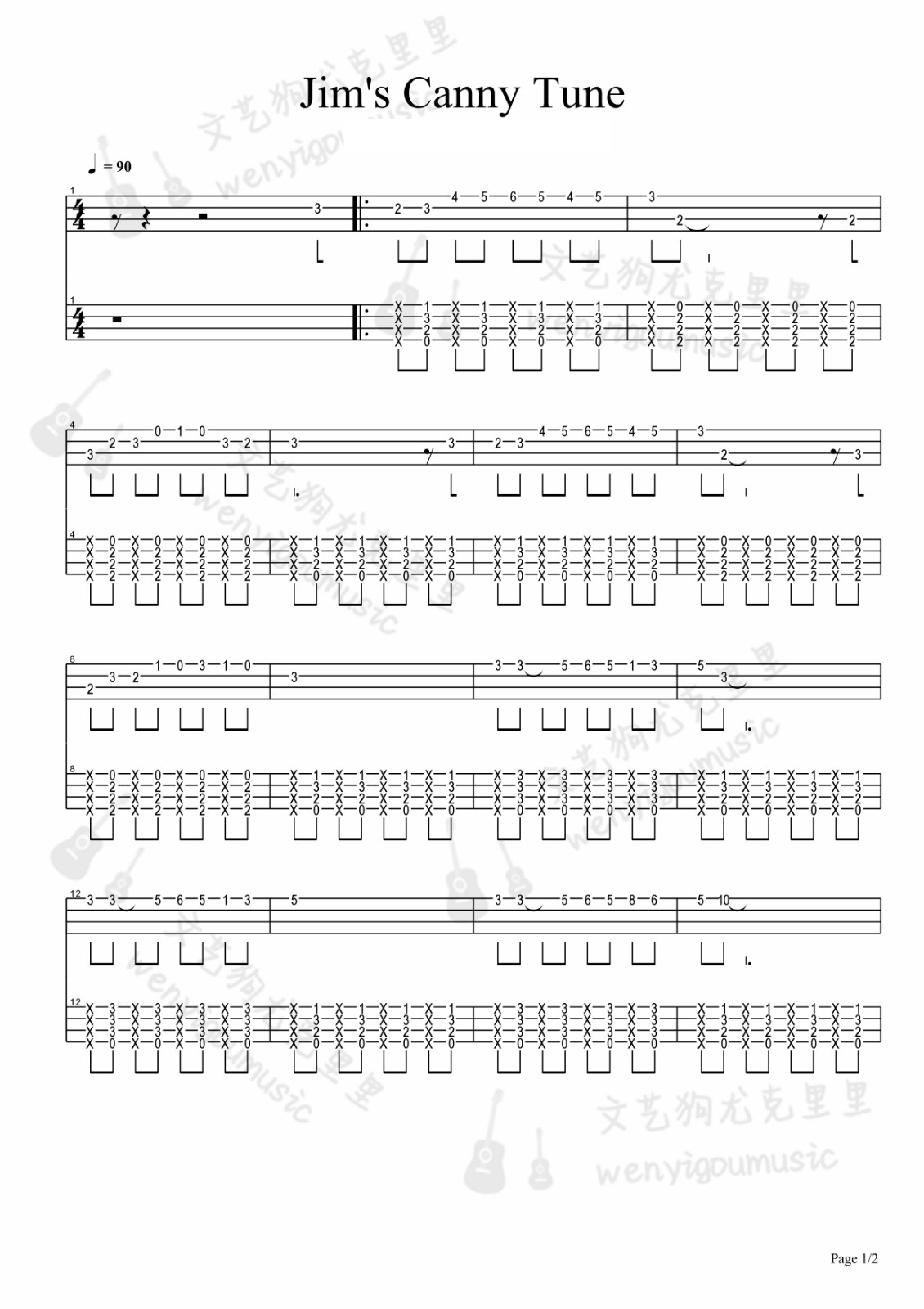 指弹练习曲《Jim'sCannyTune》尤克里里谱G调和弦谱...