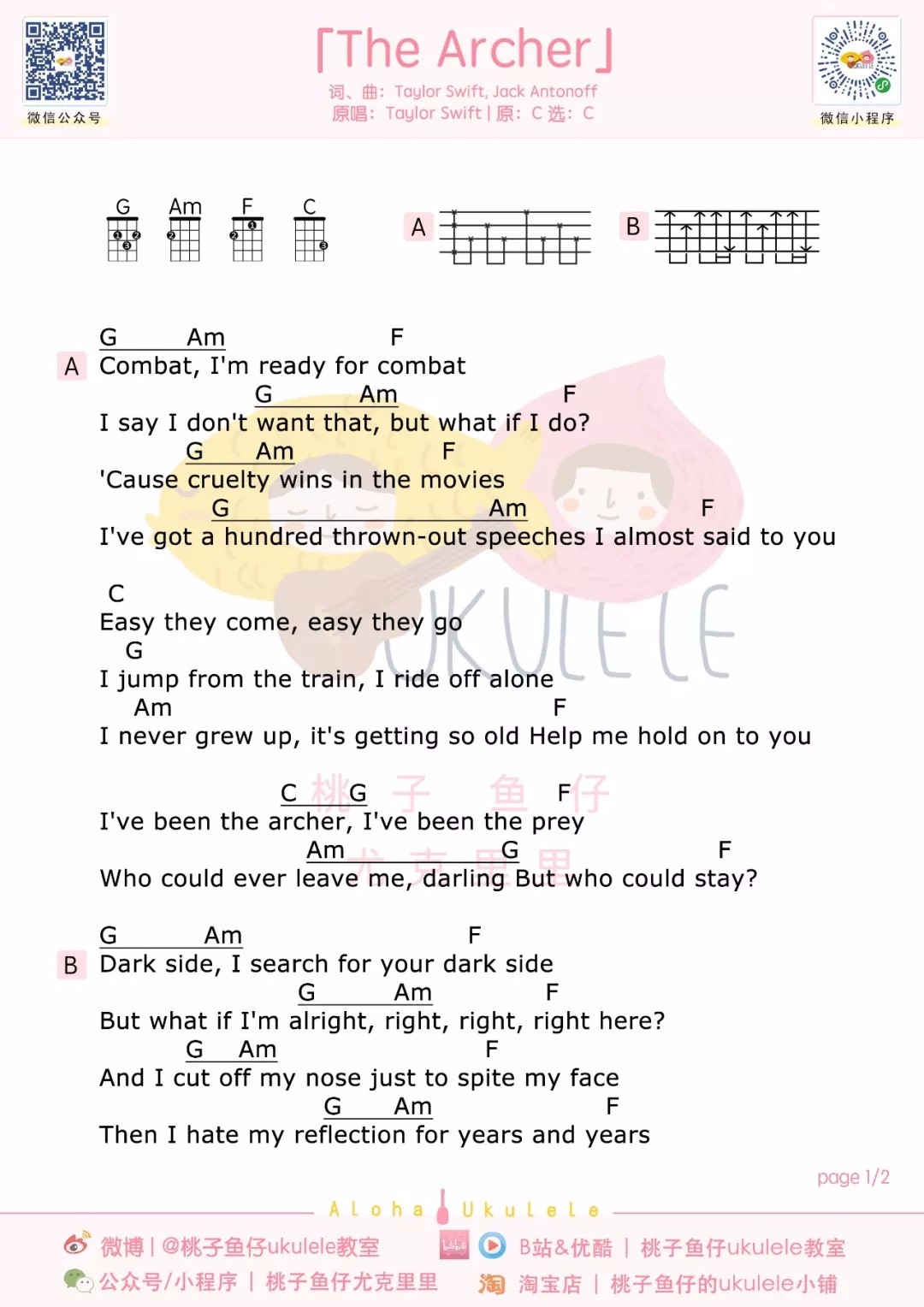 尤克里里泰勒《The Archer》尤克里里谱弹唱版 C调和弦谱_