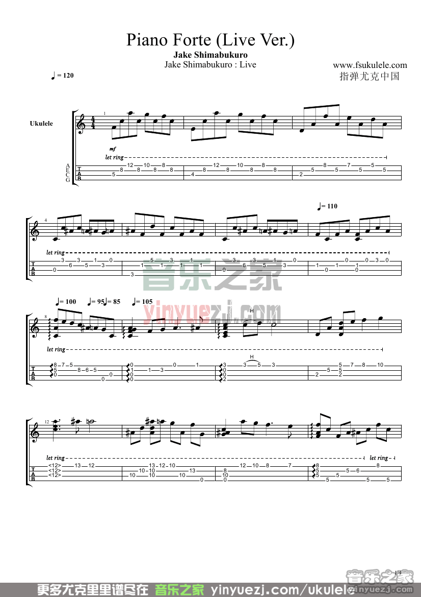 尤克里里chung eun kim《piano forte》尤克里里谱指弹版 原版和弦谱