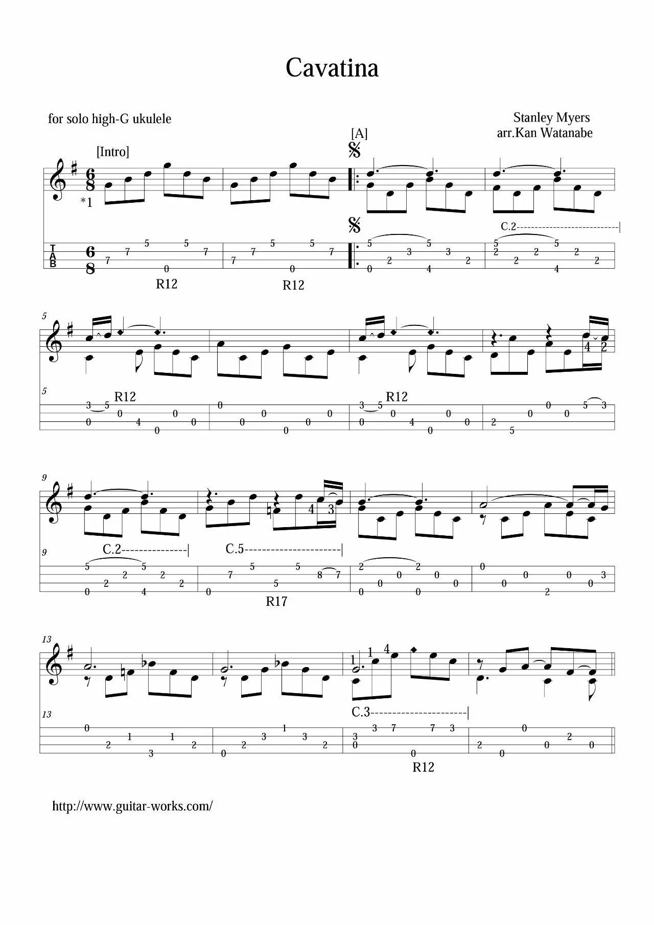 尤克里里Cavatina《优雅柔曼的心动》尤克里里谱指弹版