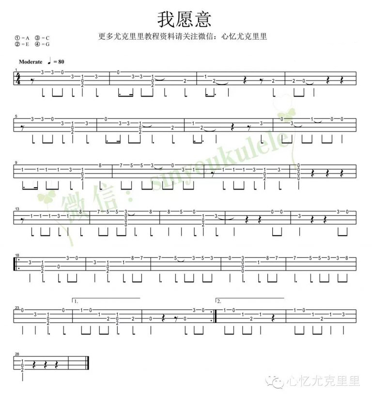 尤克里里王菲《我愿意》尤克里里谱指弹版