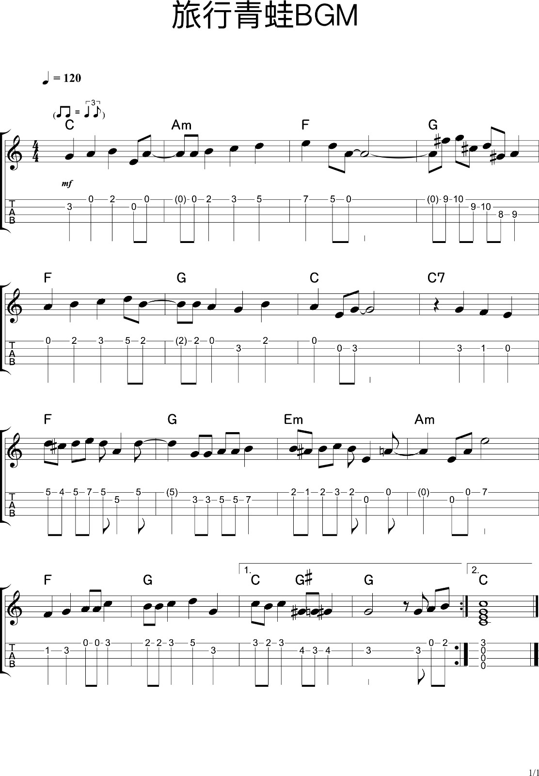 旅行青蛙《旅行青蛙BGM》尤克里里谱指弹版...