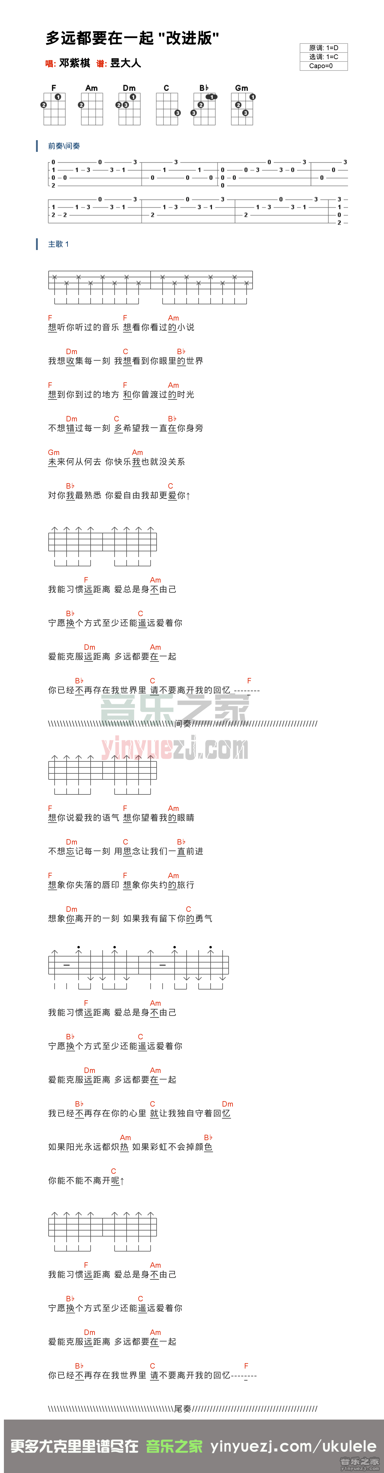 邓紫棋《多远都要在一起》尤克里里谱弹唱版...