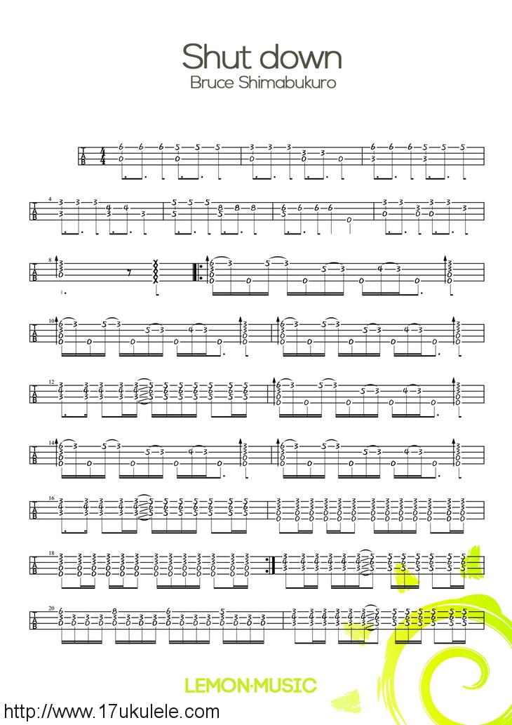 尤克里里《shut down》- Bruce shimabukuro 尤克里里指弹谱
