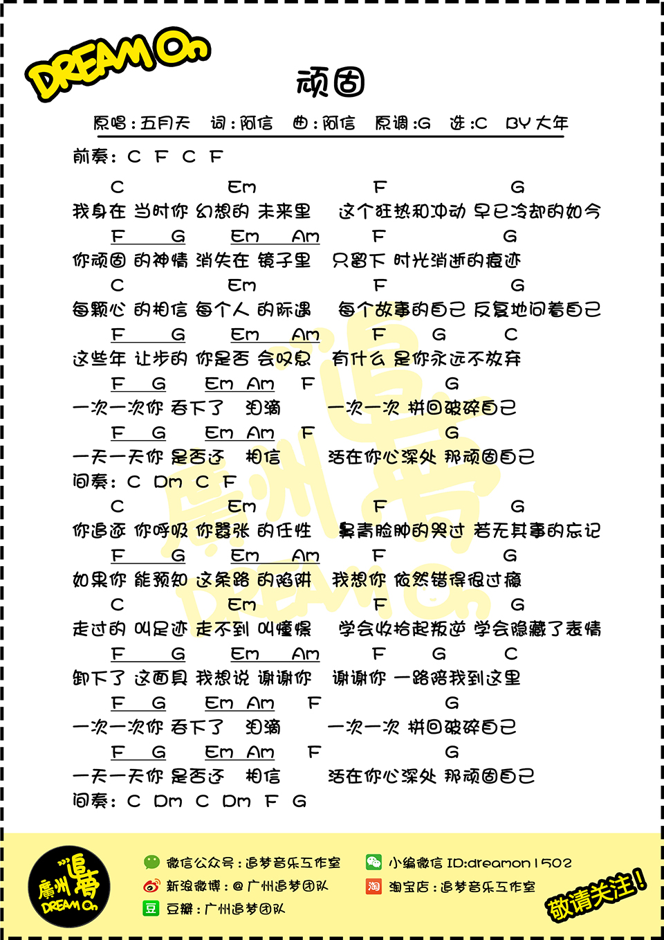 顽固-五月天尤克里里弹唱谱...