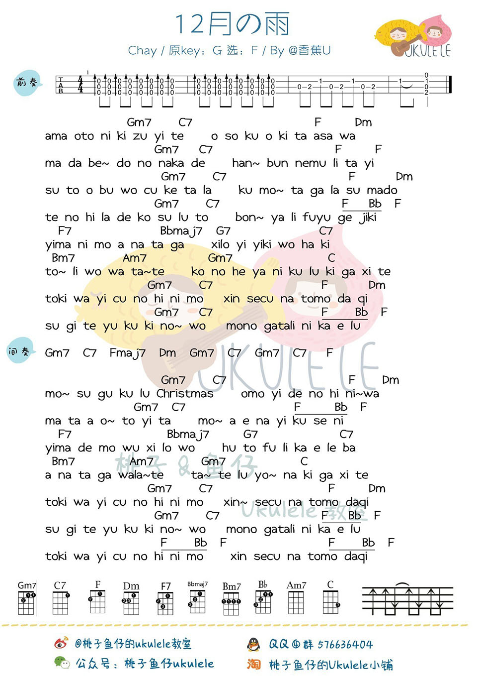 尤克里里12月の雨 尤克里里谱 by 香蕉