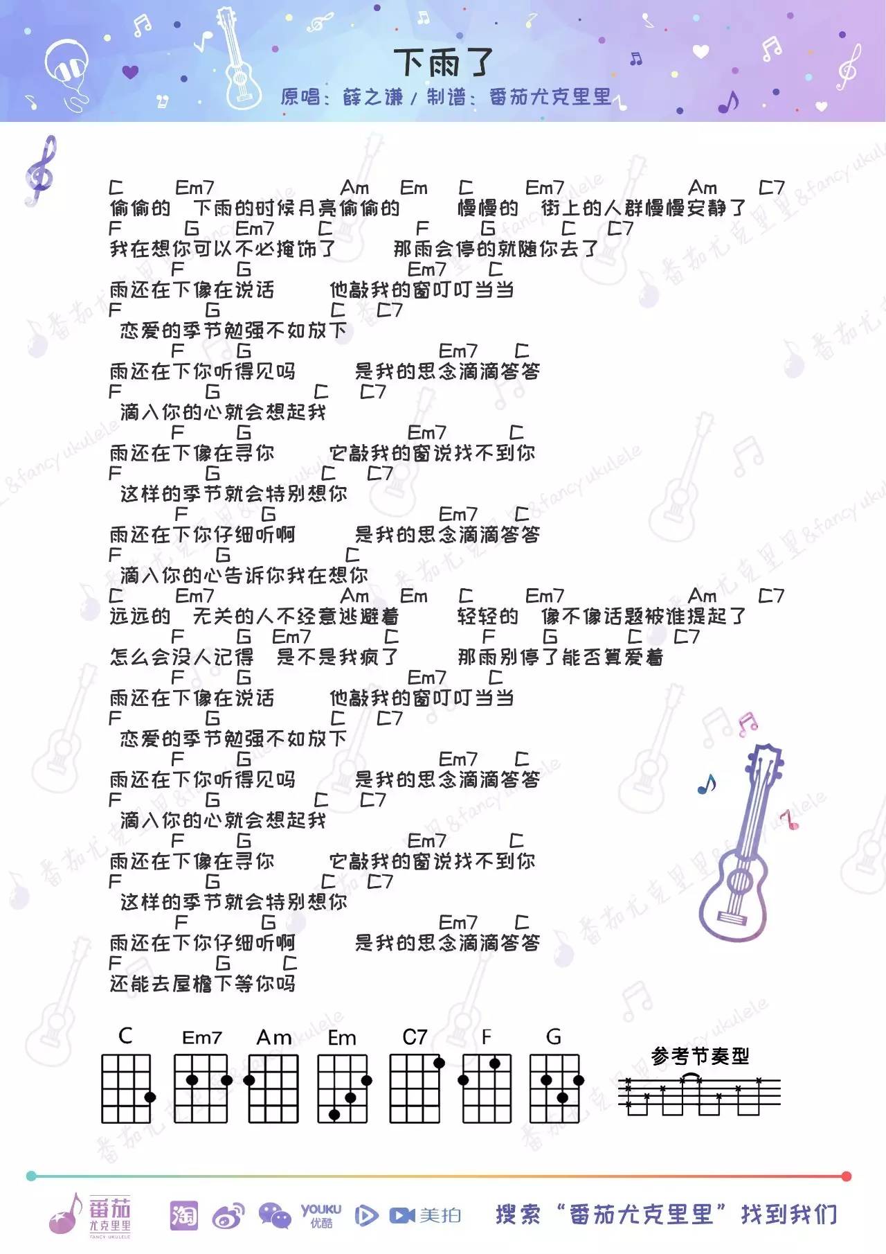 下雨了-薛之谦尤克里里弹唱谱...