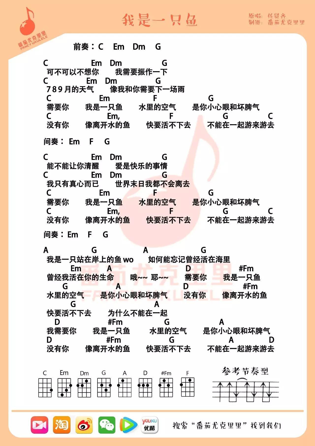 尤克里里我是一只鱼 - 任贤齐 弹唱谱
