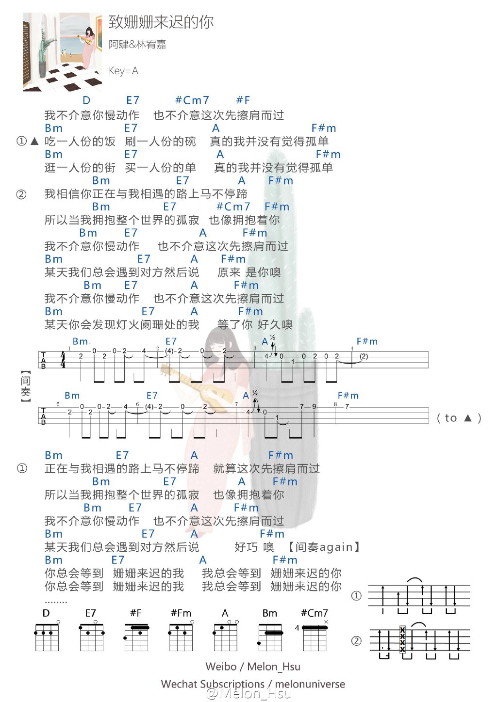 《致姗姗来迟的你》-阿肆&林宥嘉ukulele谱...