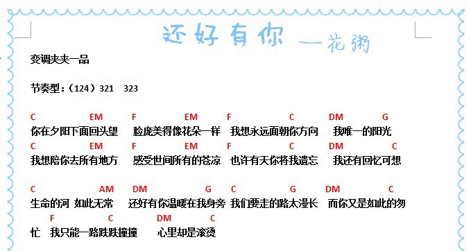 尤克里里《还好有你》- 花粥 ukulele弹唱谱