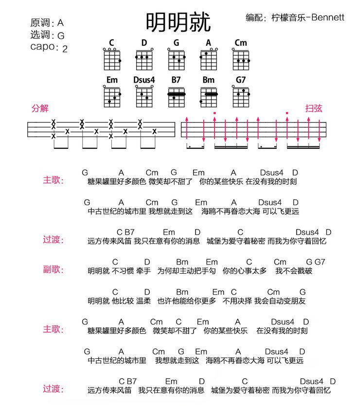 尤克里里《明明就》- 周杰伦 尤克里里弹唱谱