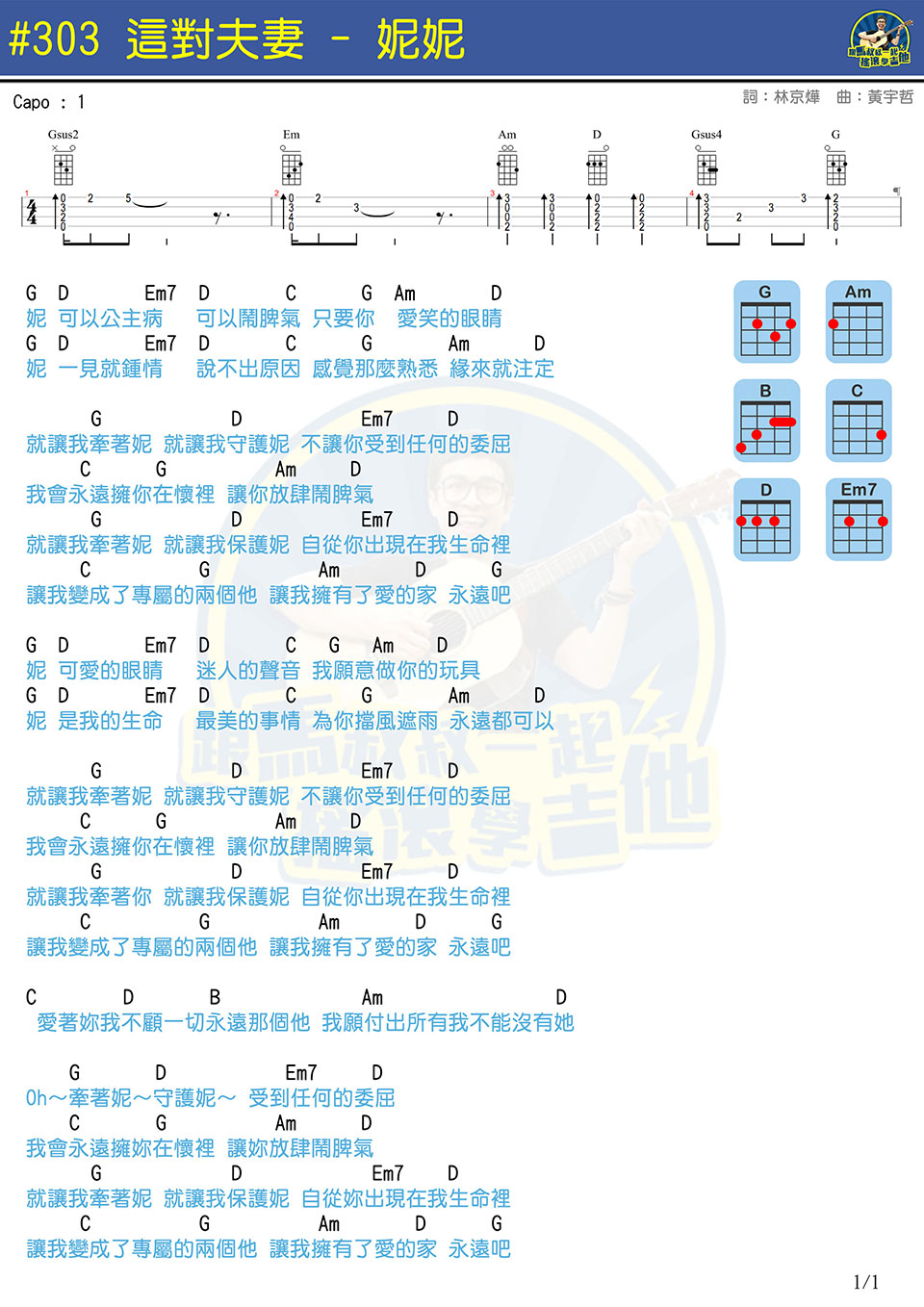 《那对夫妻-妮妮马叔叔尤克里里》尤克里里谱,共有1张高清图谱,免翻页排版设计。...