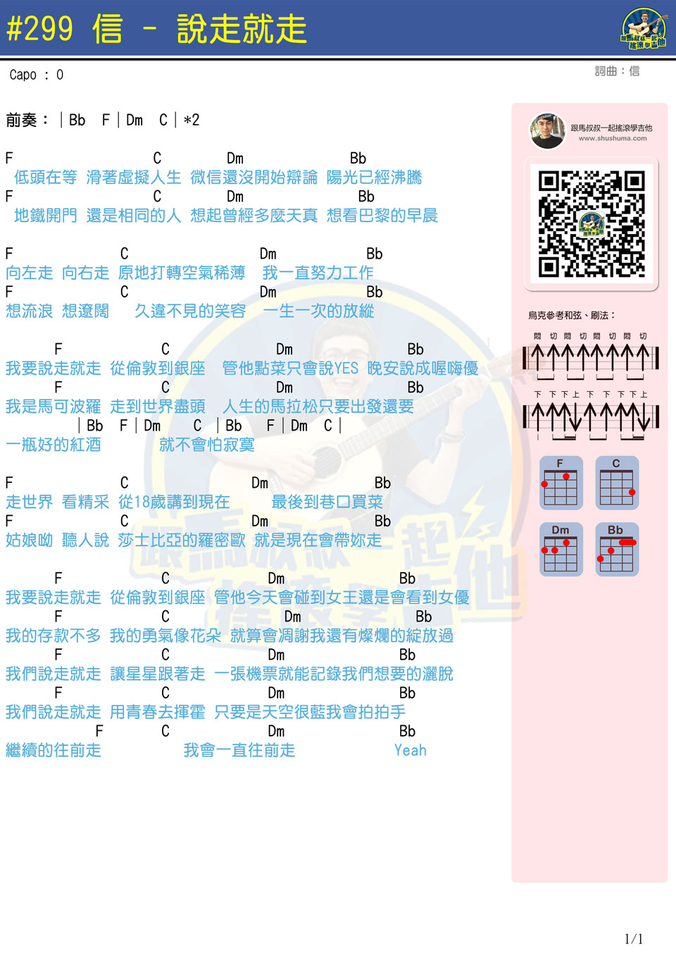《说走就走-信》尤克里里谱,共有1张高清图谱,免翻页排版设计。...