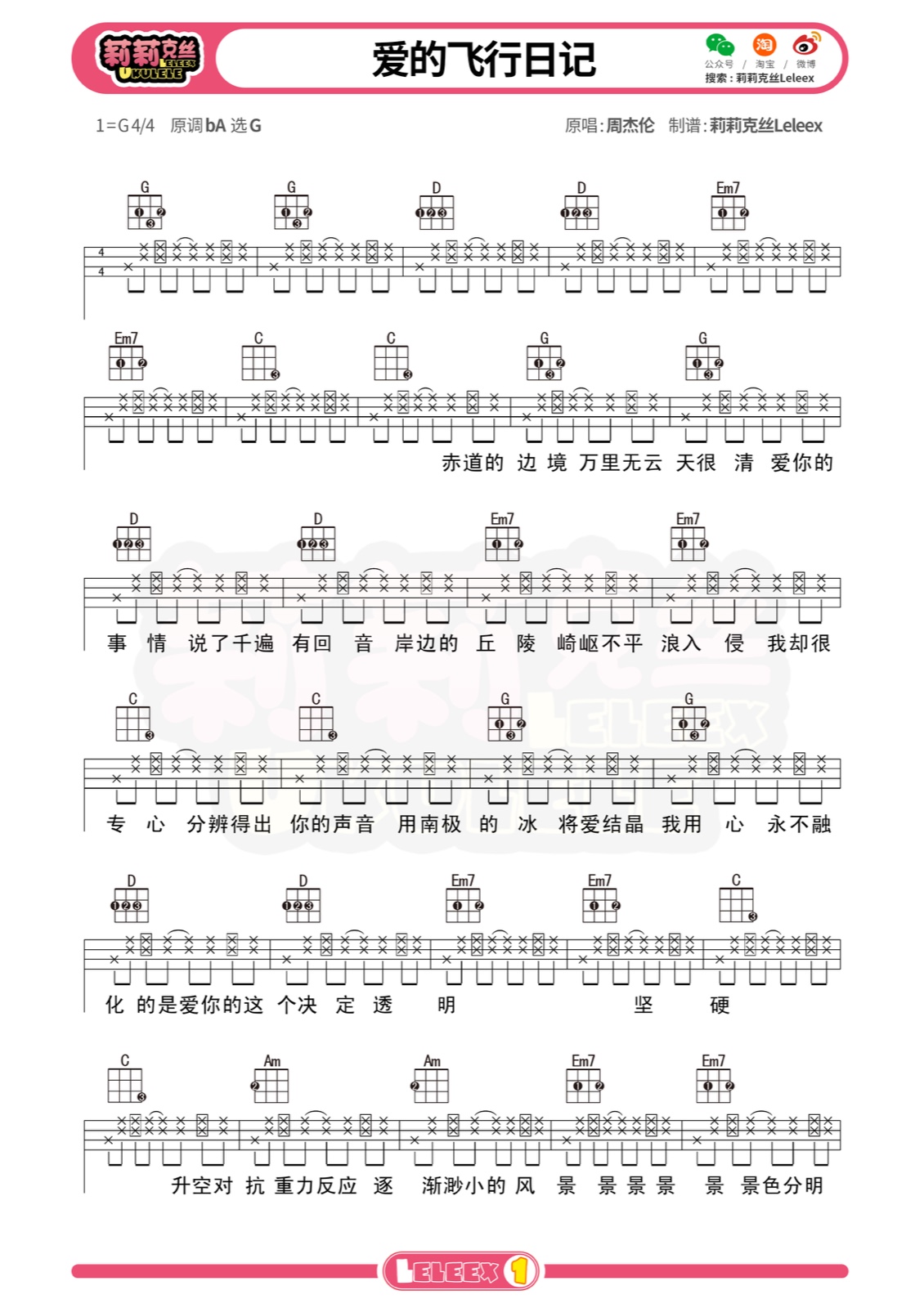 周杰伦《爱的飞行日记》尤克里里谱,共有2张高清图谱,免翻页排版设计。...