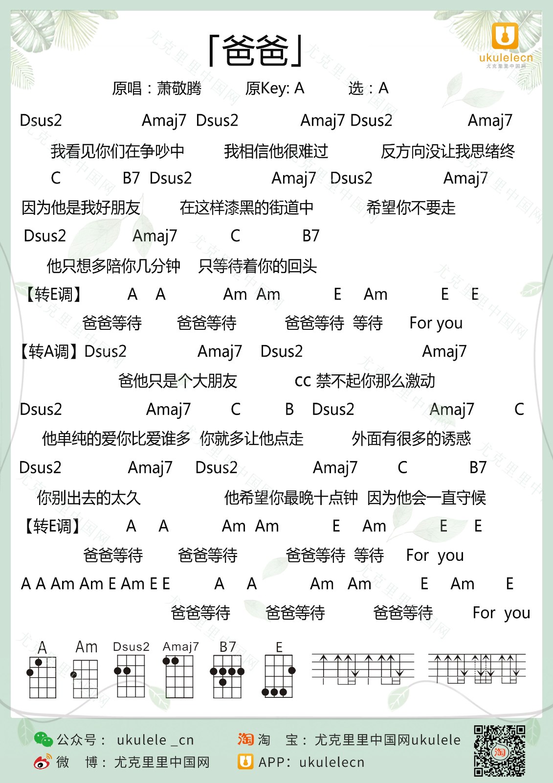 尤克里里萧敬腾《爸爸》尤克里里弹唱谱