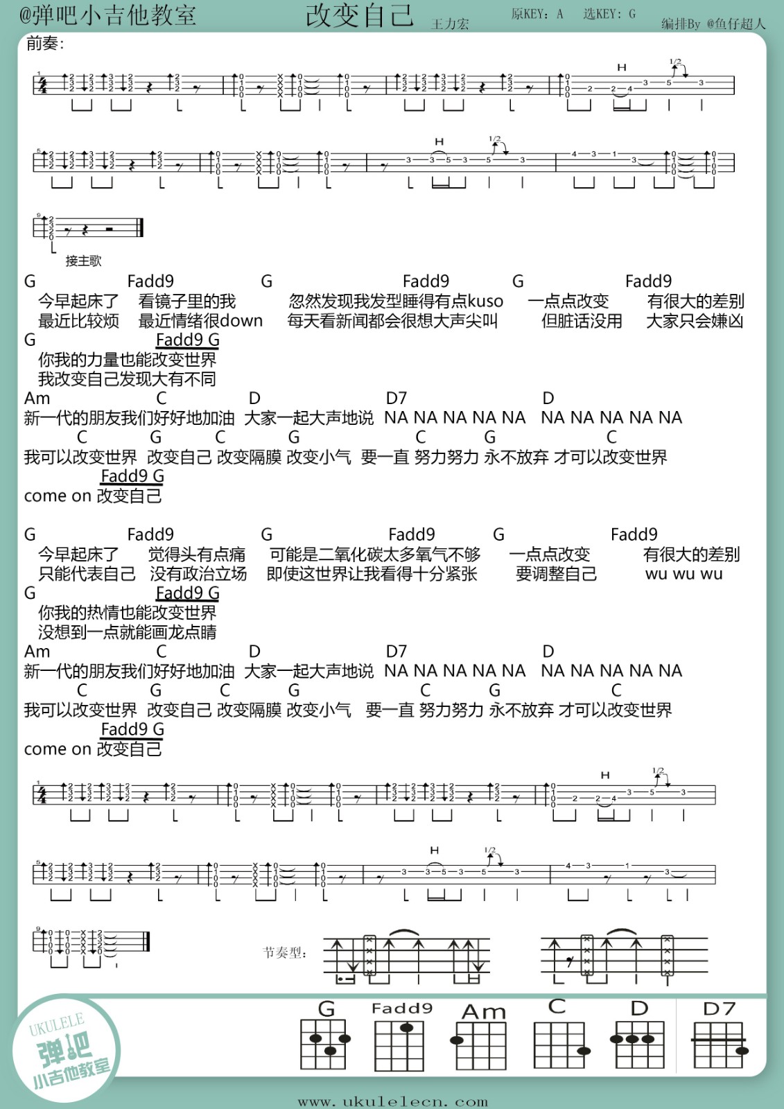 尤克里里王力宏《改变自己》尤克里里弹唱谱