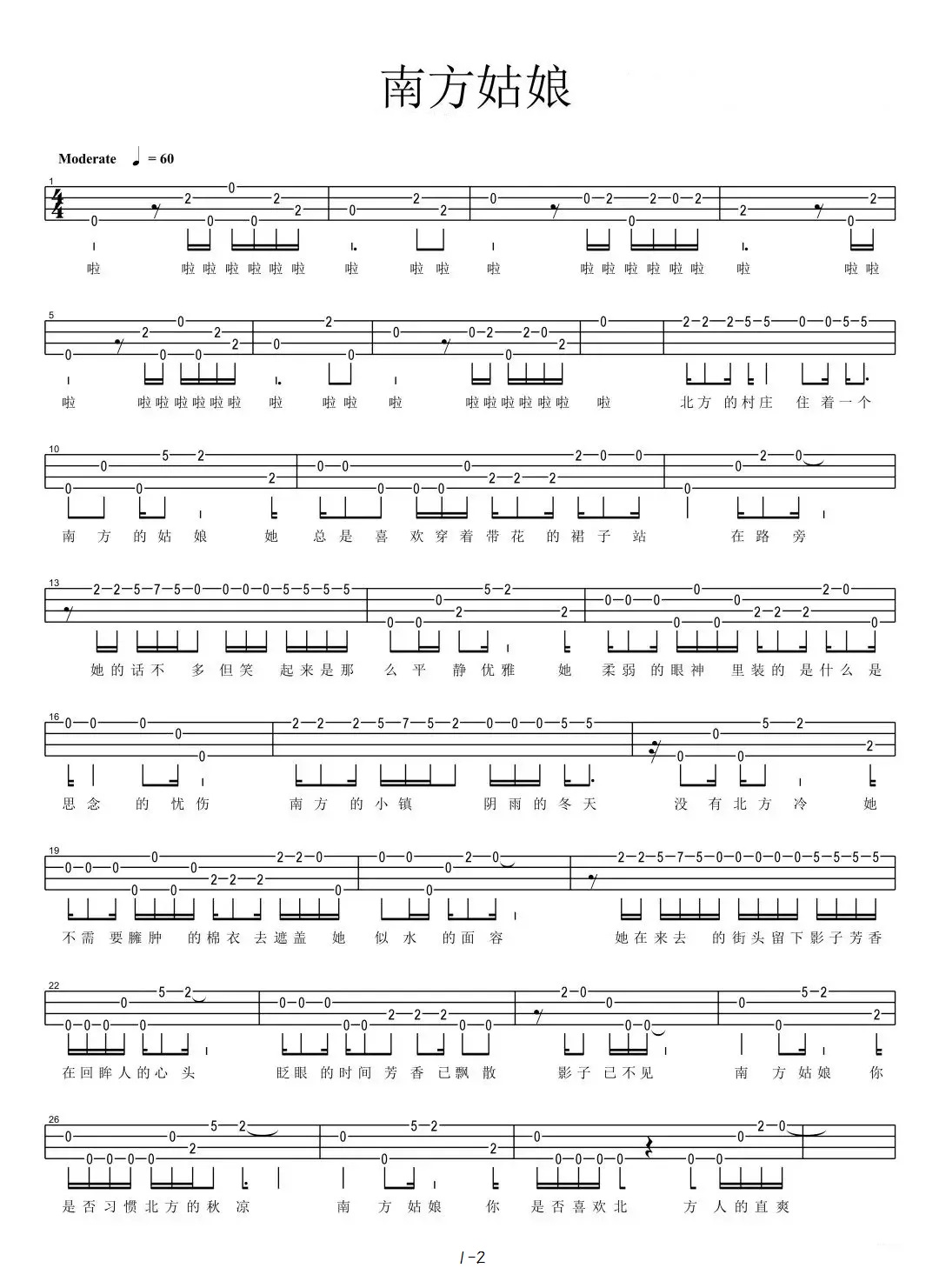 赵雷《南方姑娘》尤克里里谱,共有2张高清图谱,免翻页排版设计。...