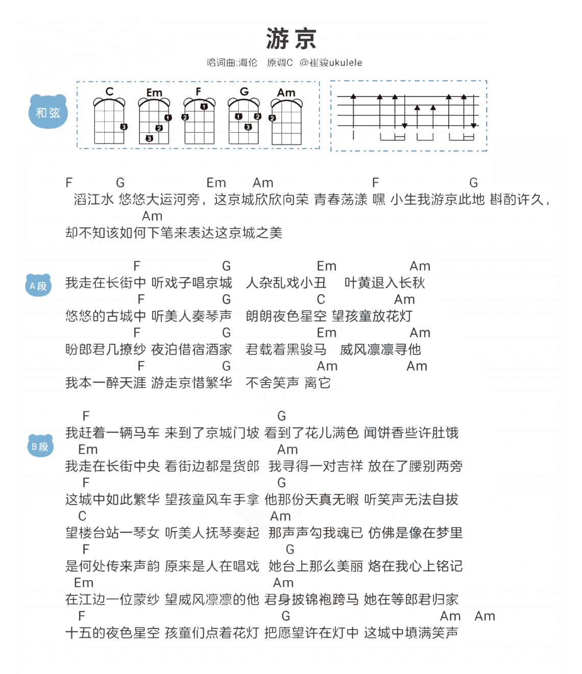 海伦《游京》尤克里里谱,共有1张高清图谱,免翻页排版设计。...
