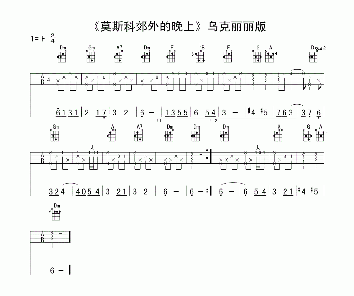 尤克里里《莫斯科郊外的晚上》尤克里里谱
