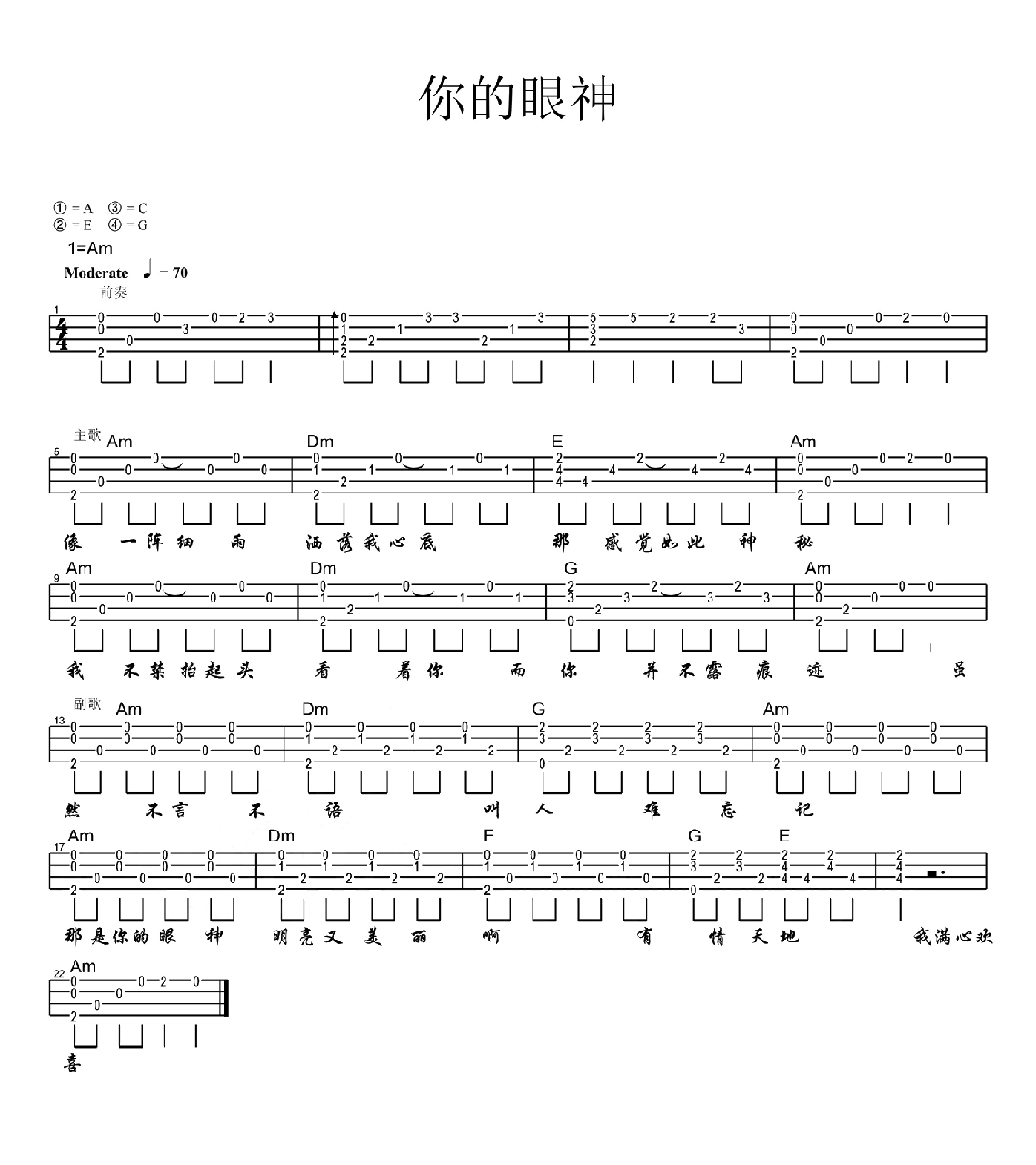 尤克里里蔡琴《你的眼神》尤克里里谱