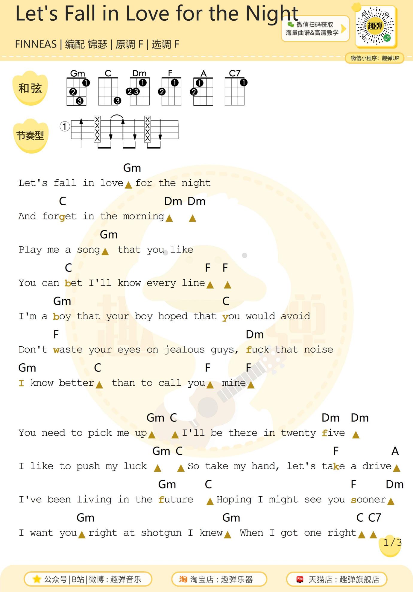 《Let'sFallinLovefortheNight》尤克里里谱,共有3张高清图谱。...